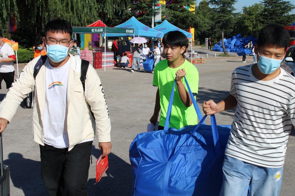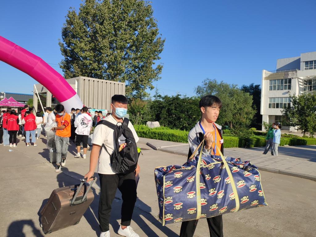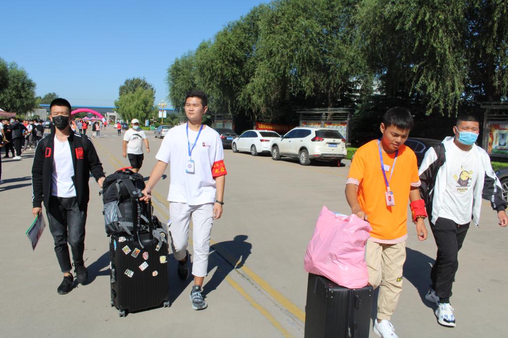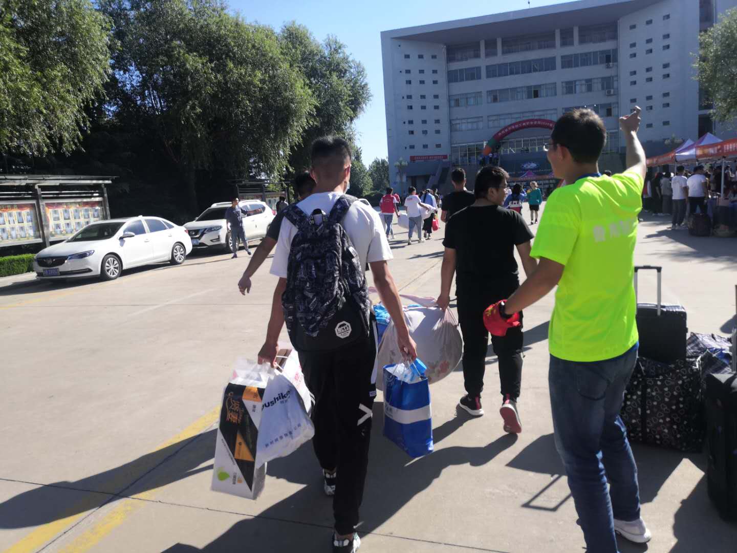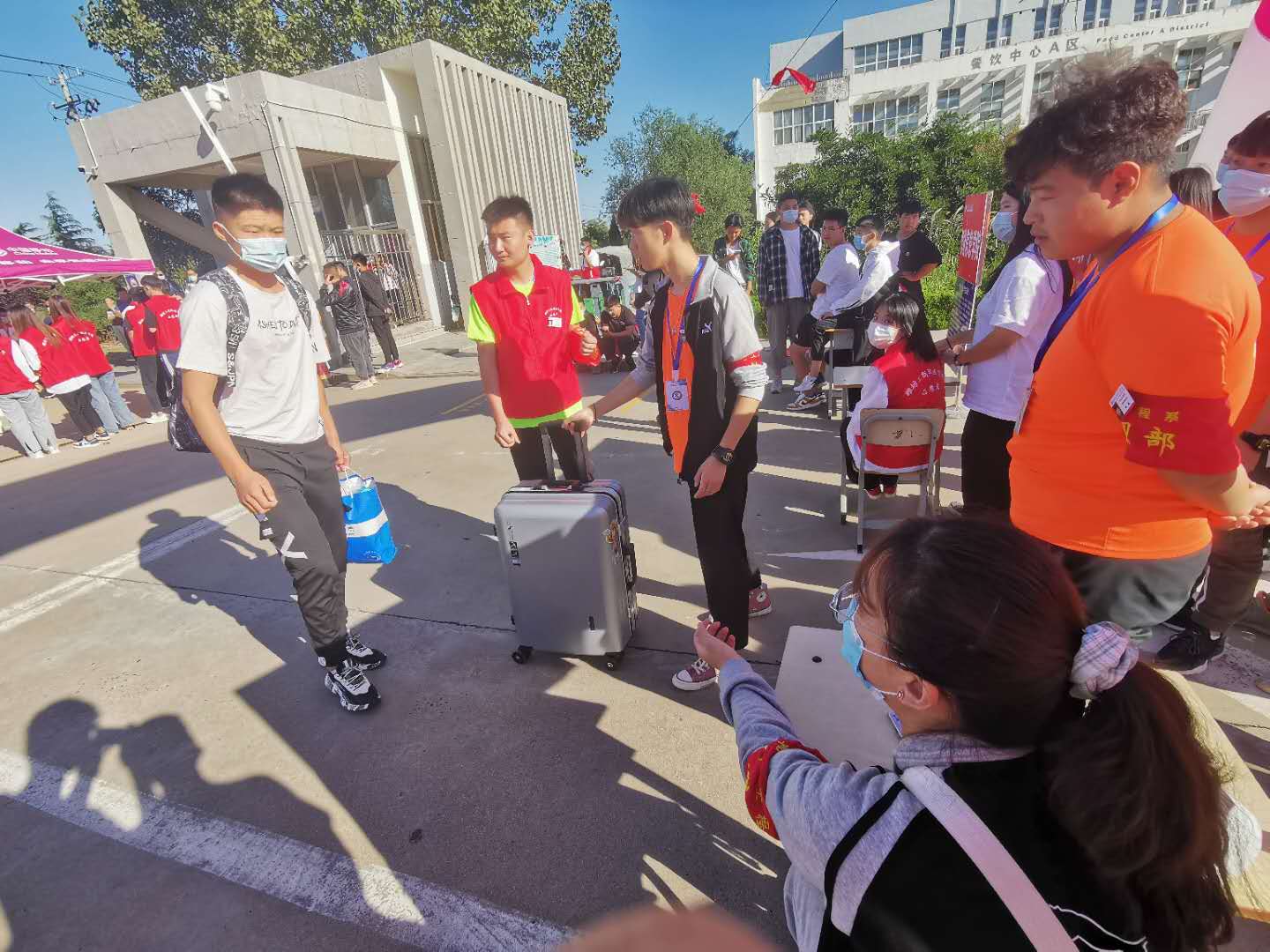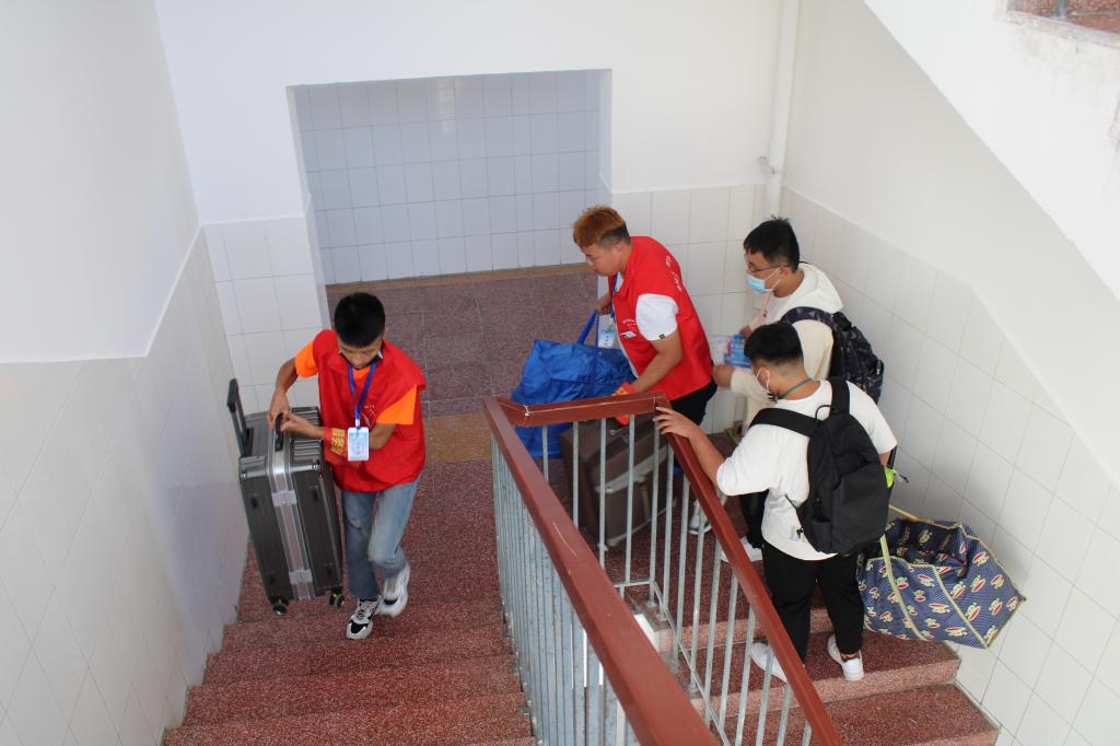 家长不可以进校园,那么“行李沉?行李多?一个人拿不了?”的问题该如何解决?不担心!志愿者们来助力,用汗水为新生保驾护航,安全送到宿舍门口。