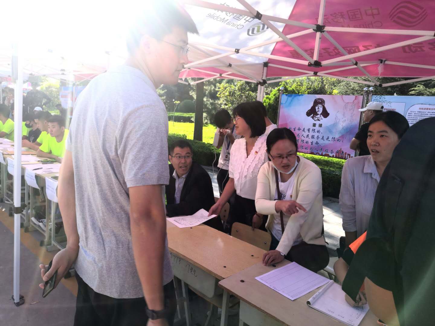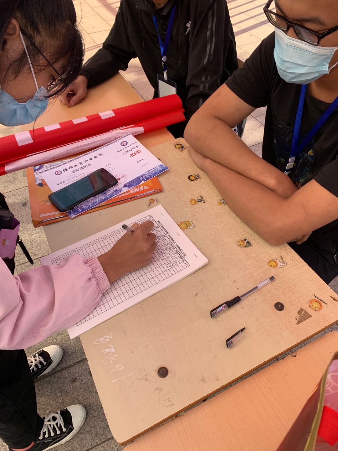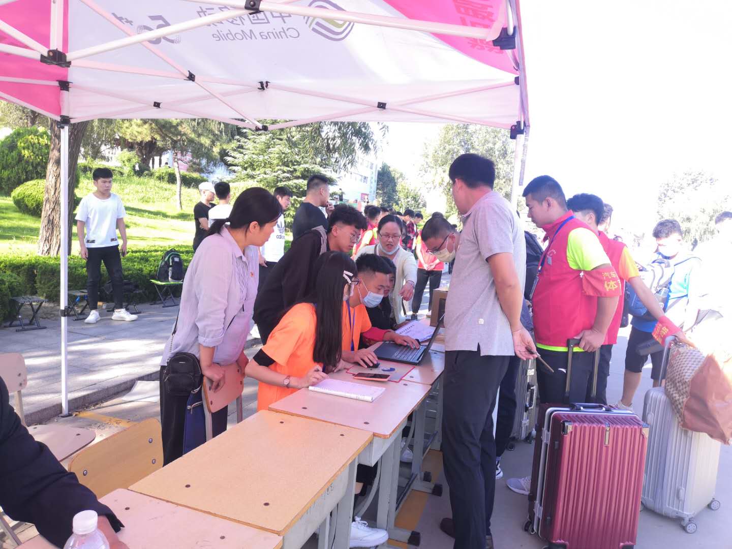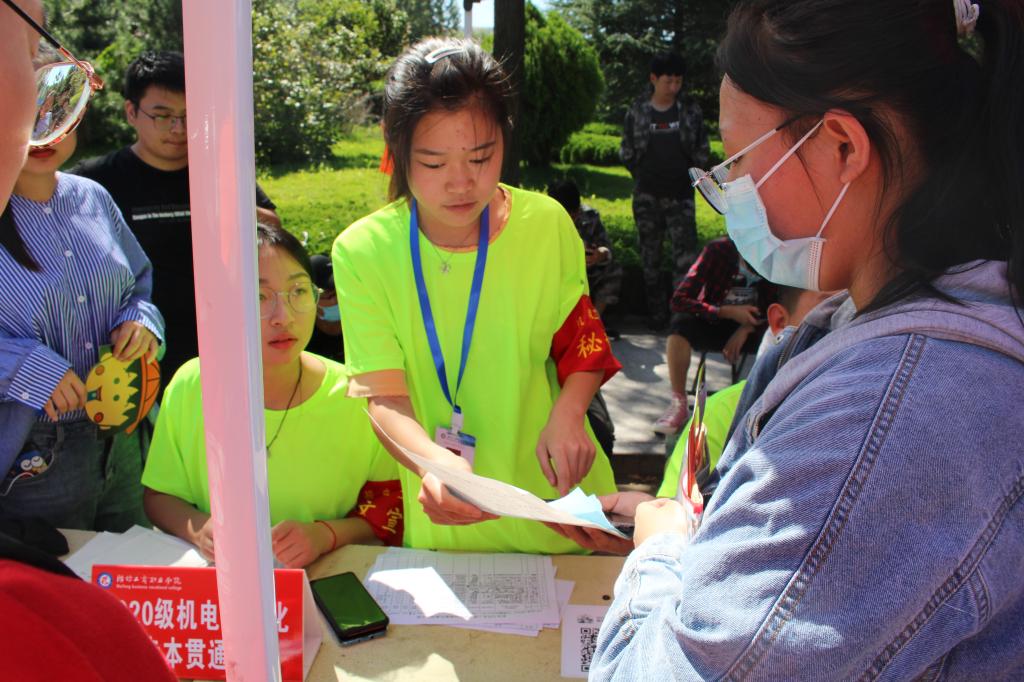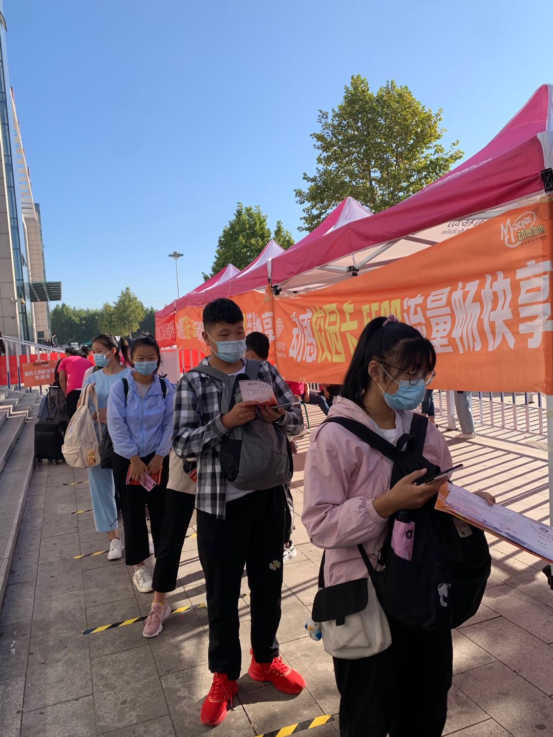 今天一早,我系志愿者们就早早来到车站了,行动迅速的布置好现场,只为等待前来报到的新同学。来报道的小萌新们有序排好队伍,依次进行登记、体温填报等一系列事情。