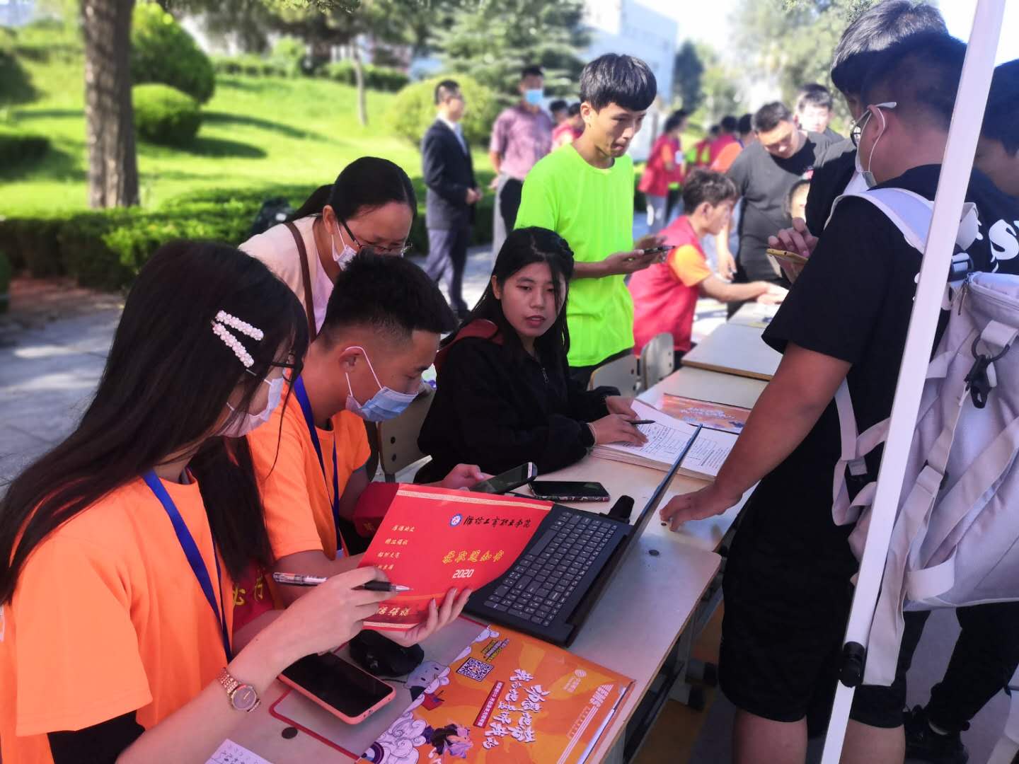 新生接待处,一张张热情的笑脸,一句句亲切的问候,一项项贴心的服务,欢迎着来自祖国各地的莘莘学子。来报道的小萌新在学长们的帮助下,来到了新生登记处。