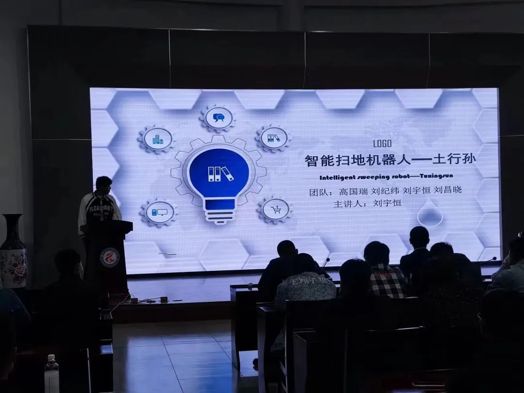各项目负责人按照抽签顺序依次上台进行项目宣讲。比赛过程中,一个又一个充满创新的项目让在场的观众拍手叫好,台上的他们,声情并茂,抑扬顿挫,身体的每一个部位都充斥着对项目的决心;台上的他们,举手抬足,挥斥方遒,尽显新时代少年之风貌。