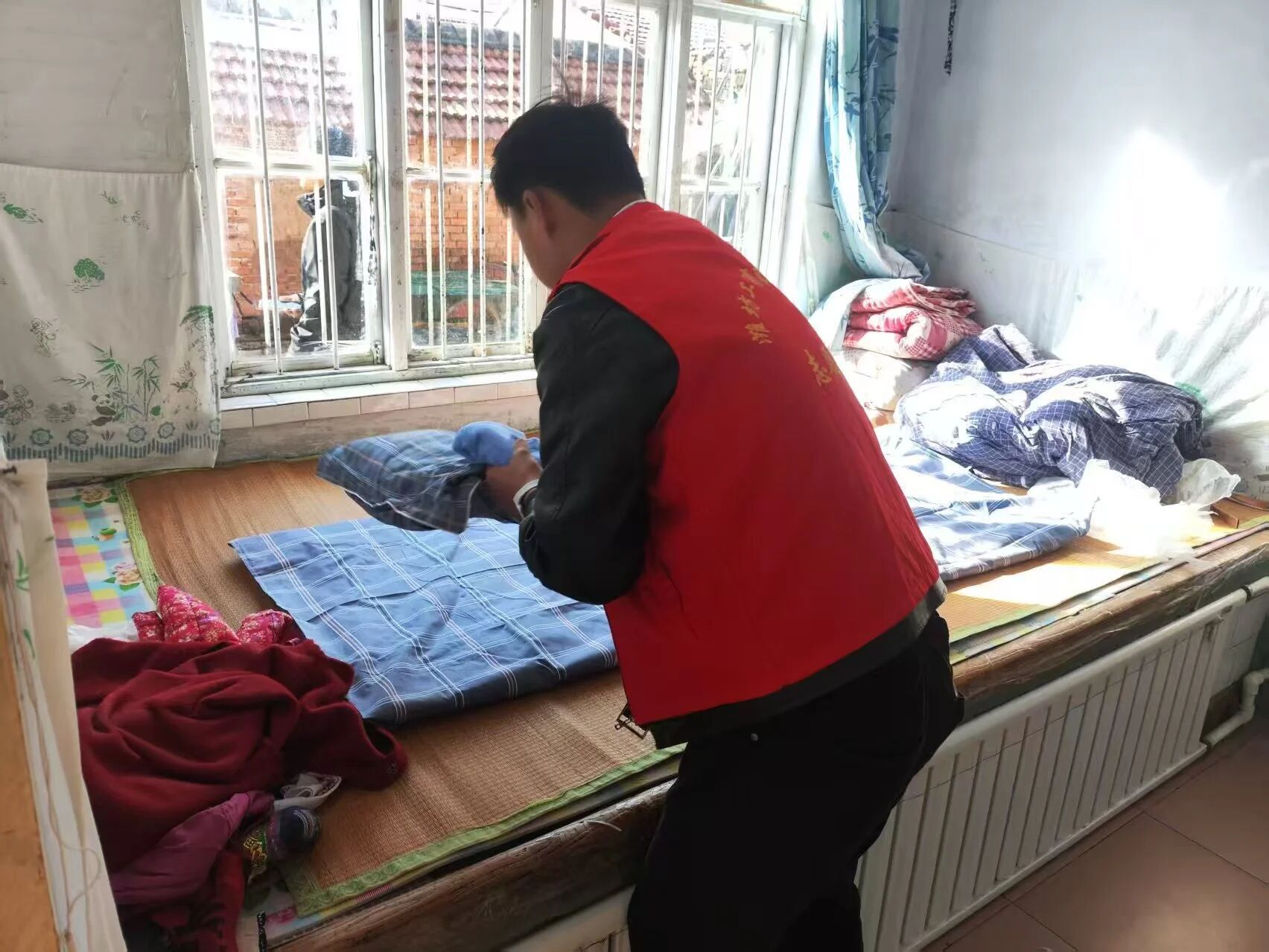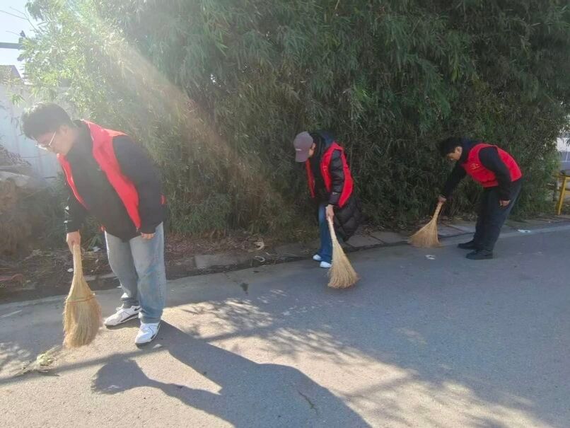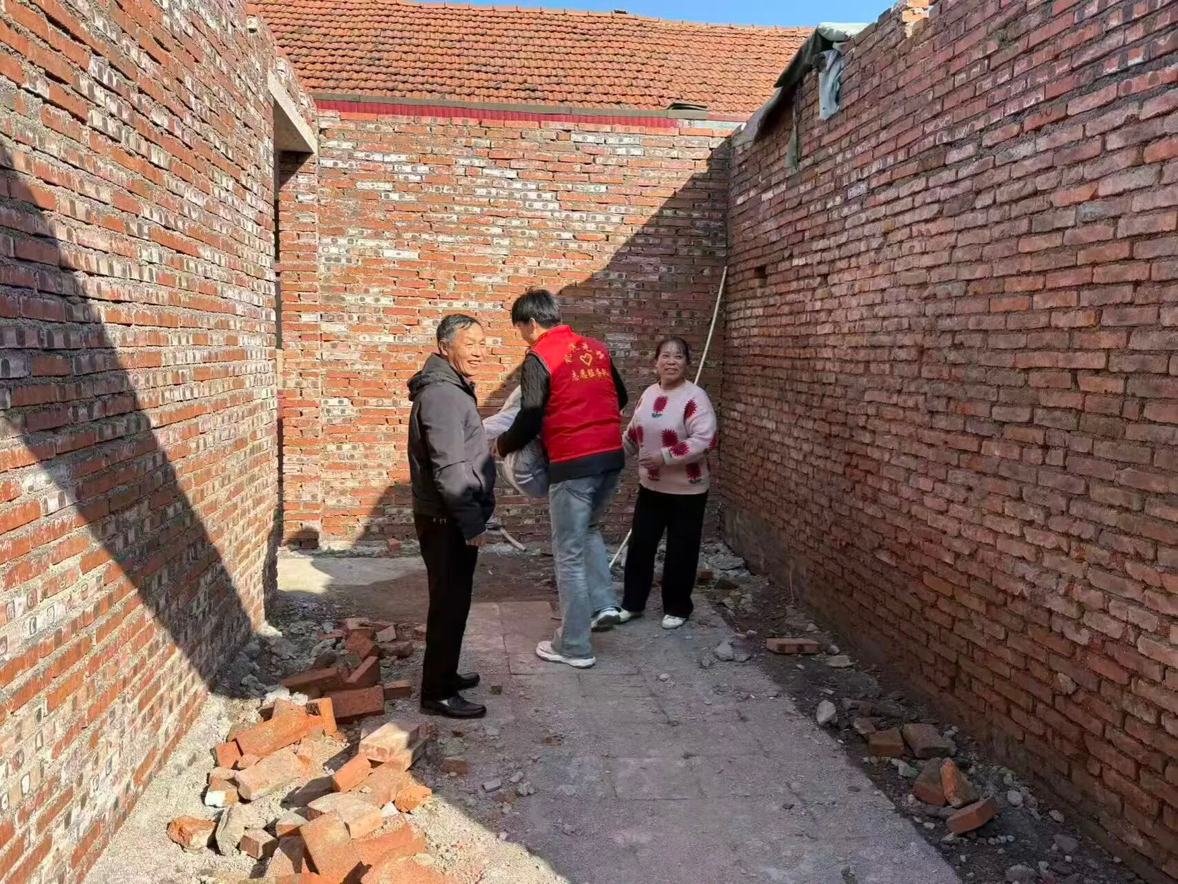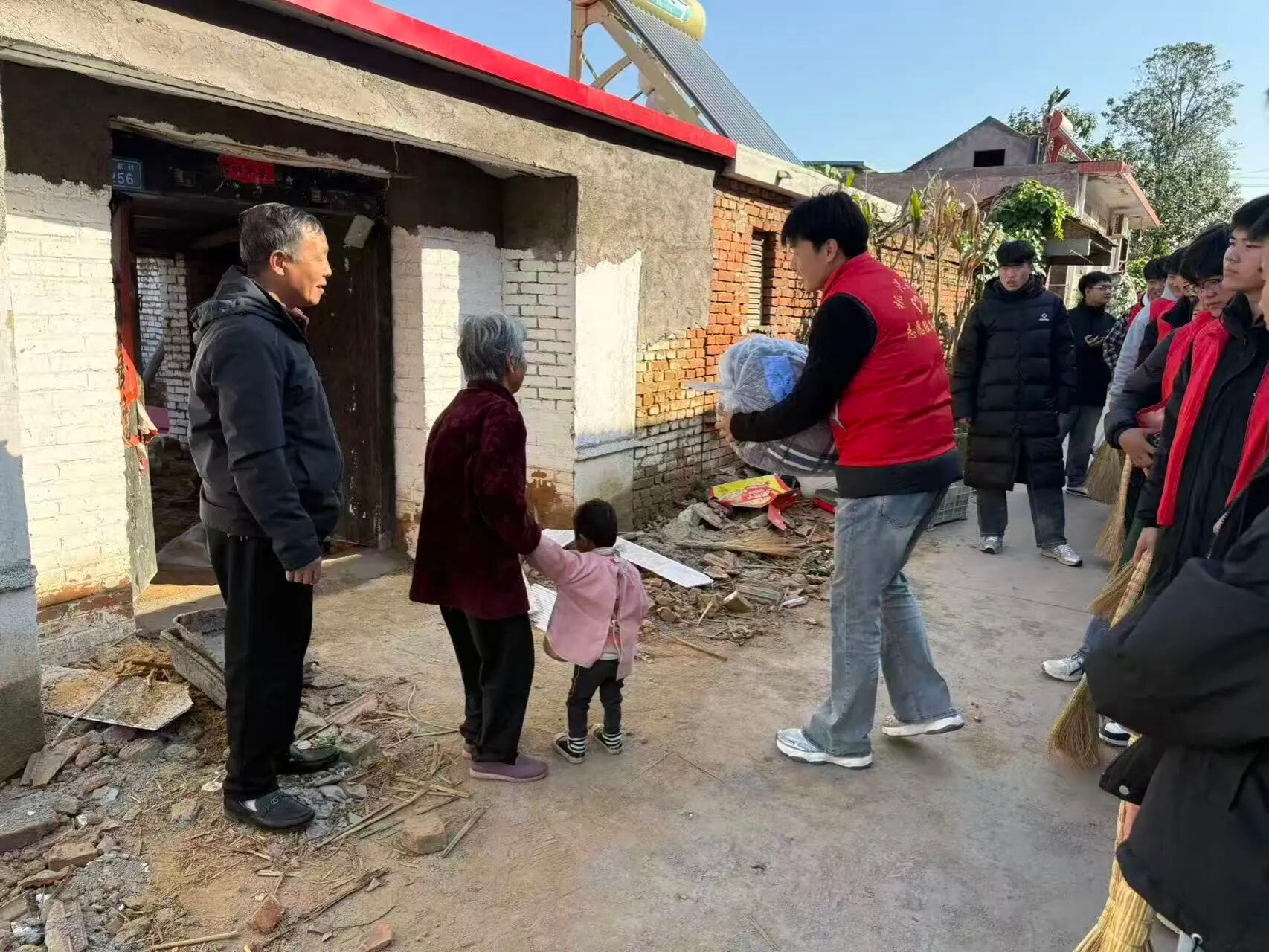 随后,大家拿起清洁工具帮老人清理院内落叶、杂草与杂物:有的蹲扫角落碎石,有的踮脚擦窗台灰尘,有的打包清运垃圾,分工明确、干劲十足。