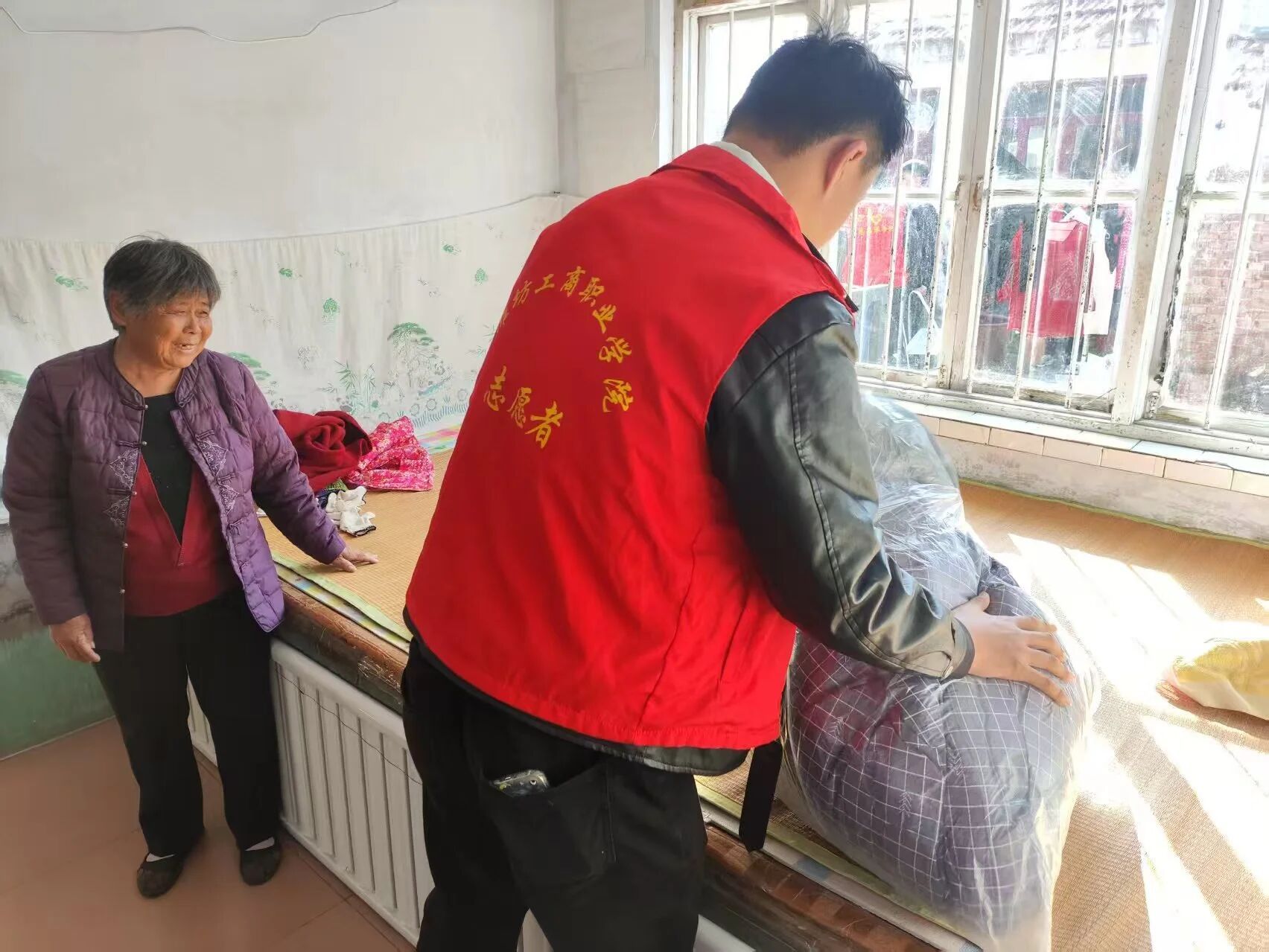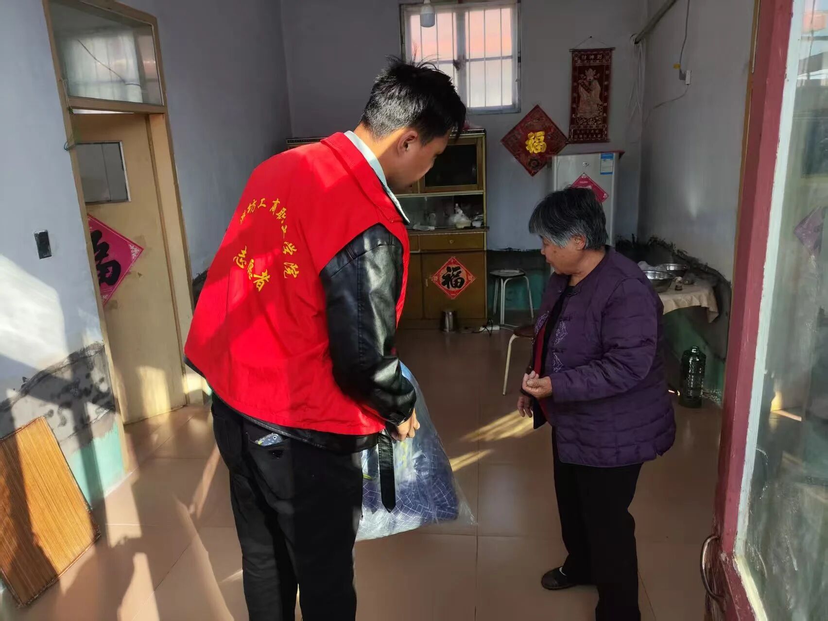 早上八点,志愿者集合完毕,携带扫帚、簸箕等清洁工具准时前往刘家村。抵达后,同学们先带慰问品看望老人,主动拉家常、问起居,温暖话语让老人笑容满面。