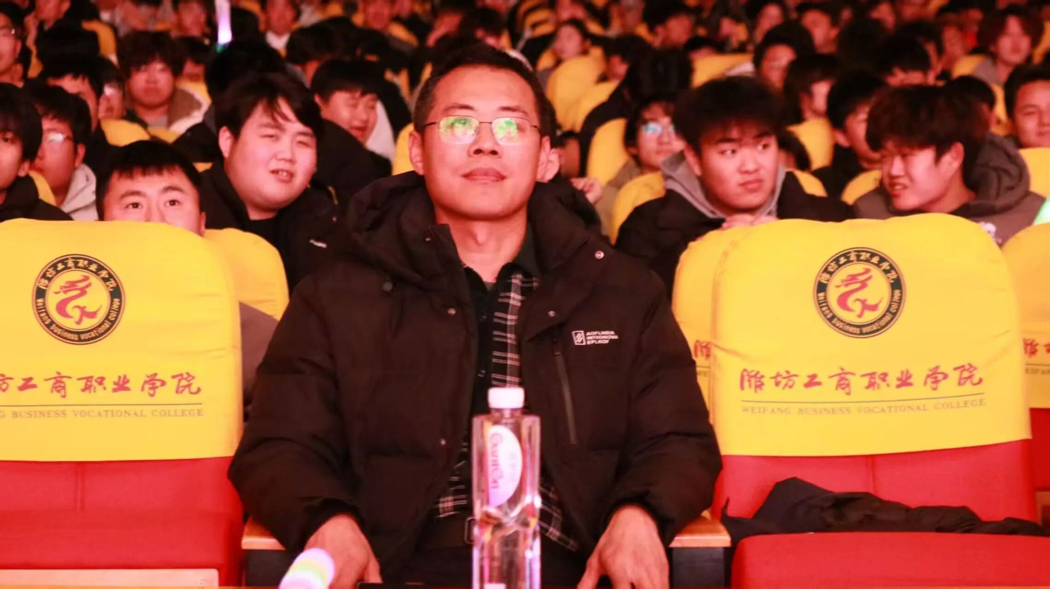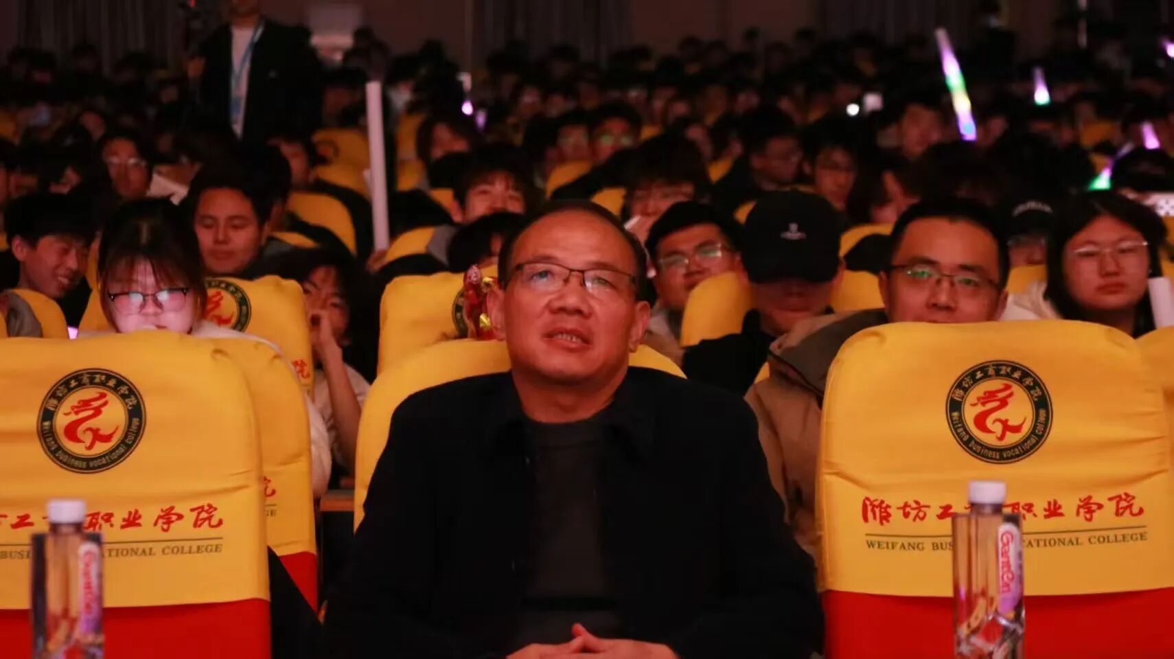 参加元旦晚会的有潍坊工商职业学院党委常务副书记、执行校长郑志松书记,机电与汽车工程学院执行院长王泌宝,党支部书记王卫,党支部副书记兼团总支书记徐砚全,副院长周文华,以及机电与汽车工程学院全体辅导员和学生。
