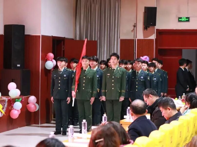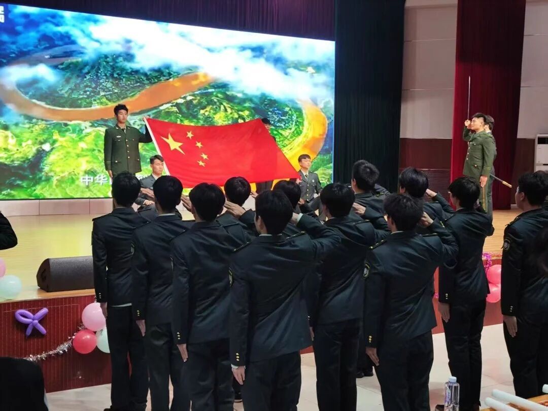 在元旦晚会正式开场前,机电与汽车工程学院国旗护卫队以规整的队列、严肃的姿态护送国旗登台。激昂的国歌奏响,全体师生肃立行注目礼,现场氛围庄重热烈。