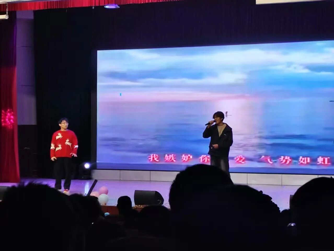 歌声里藏着万千情愫,2人合唱《想你的夜》满含思念,独唱《背着风流泪》诉说心声,4人合唱《相亲相爱》传递同窗温情,还有经典曲目《天后》带来默契演绎,每一段旋律都值得细细聆听。