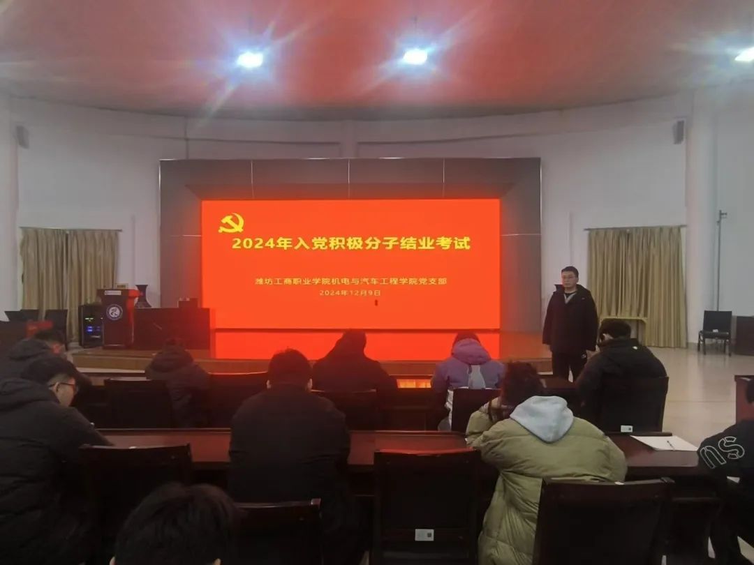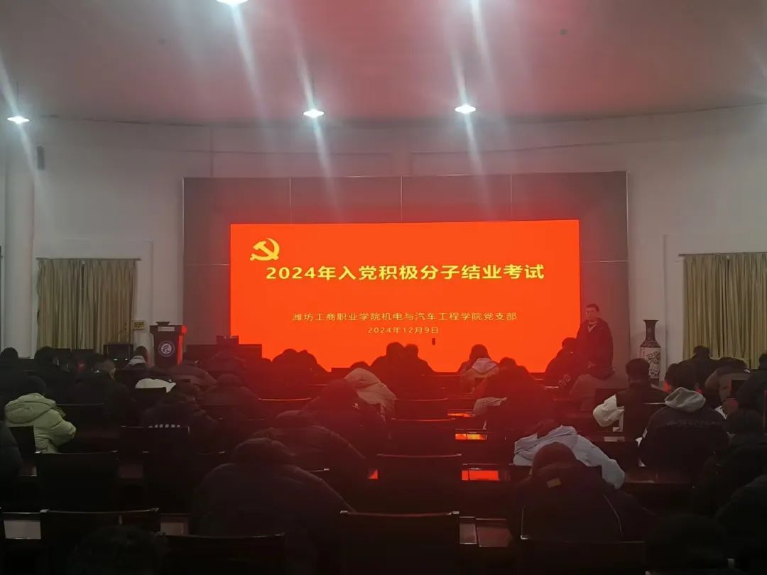 2024年12月9日晚7点至8点潍坊工商职业学院机电与汽车工程学院2024年入党积极分子于图书信息楼第二报告厅参加2024年入党积极分子结业考试。