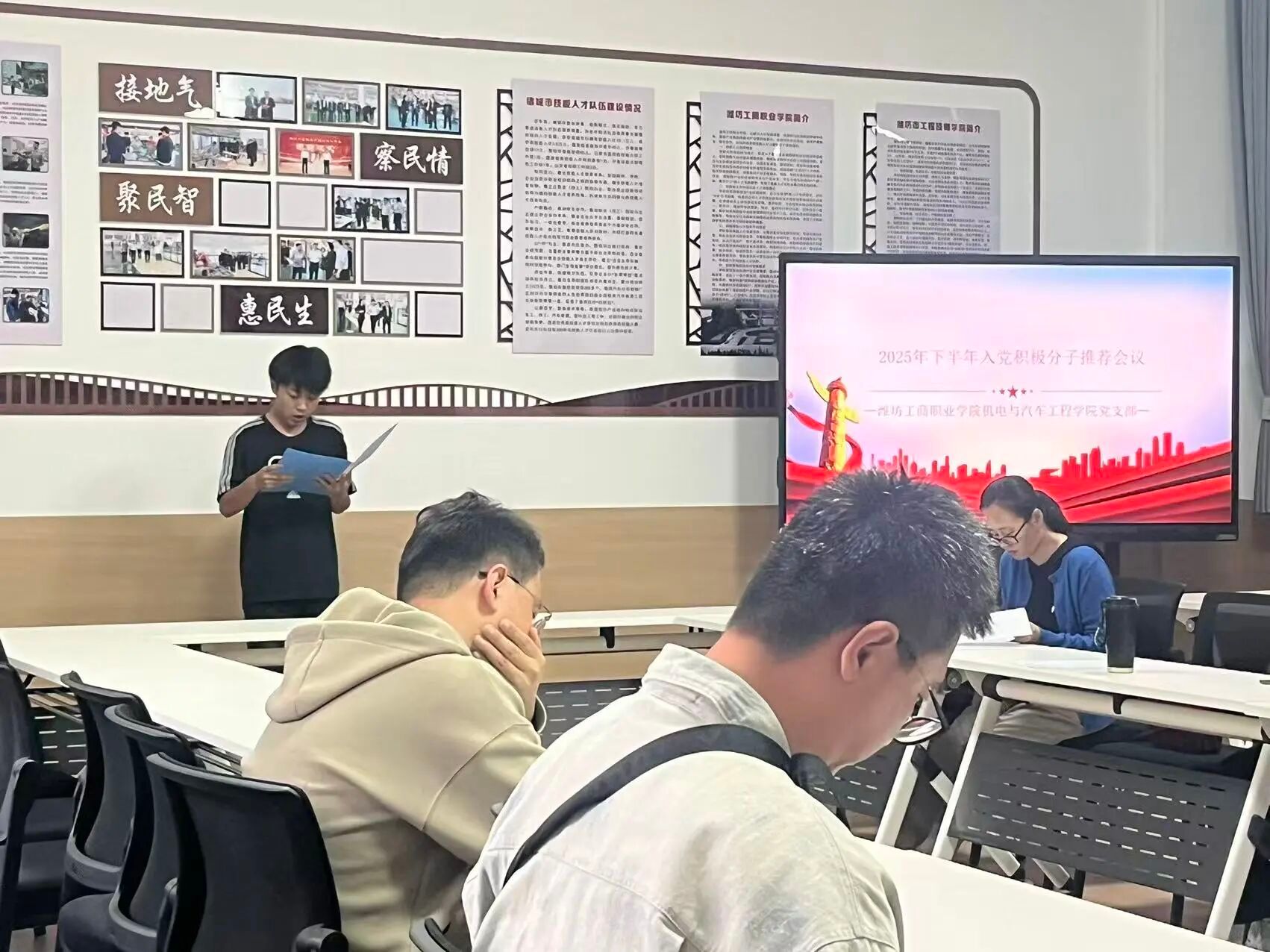为严格规范党员发展程序,切实把好党员队伍“入口关”,2025年9月23日下午两点半,机电与汽车工程学院在实训中心A座会议室召开2025下半年新一批入党积极分子推荐大会。