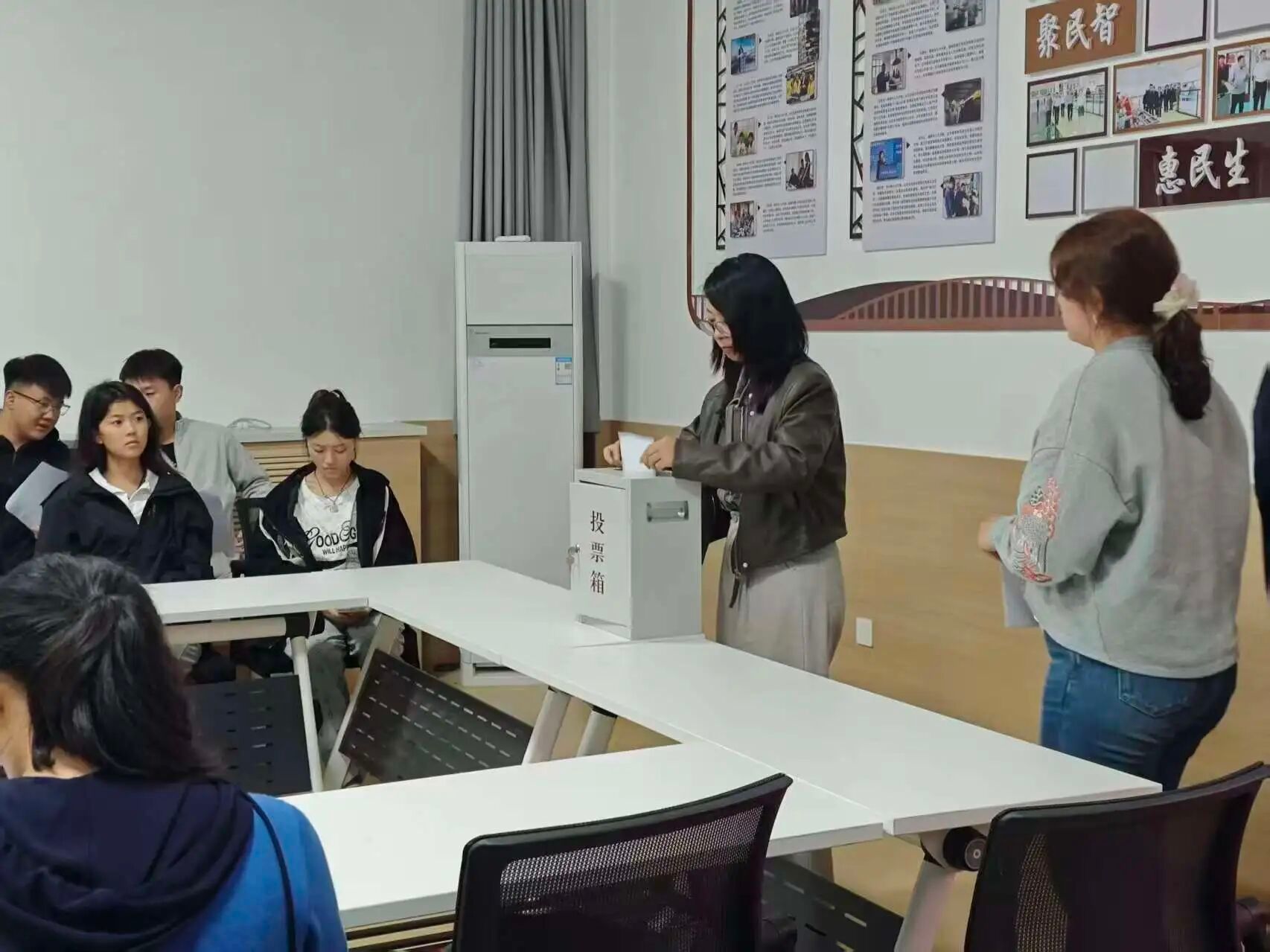 演讲结束后,每位党员教师和群众代表在党支部负责人以及各位同学的监督下,进行投票,结束后公布每名参选同学的得票数,票数双过半者通过本次竞选。会议应到人员45人,实到人员45人,最终评选为入党积极分子的为43人。