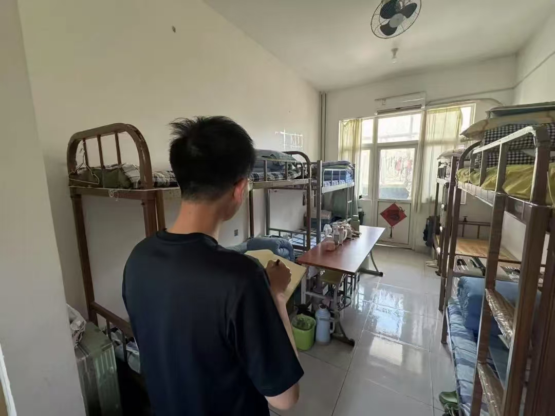 于大学校园之中,宿舍作为同学们学习生活的关键空间,其内务情况不仅映射出个人的生活习性,更对学院的整体形象有着重要影响。为切实加强宿舍管理,由学院党支部书记王卫牵头,带领多位老师及教官共同组建了检查小组,深入到各个学生宿舍开展细致且全面的检查工作。