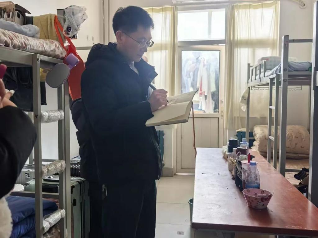 每周固定的时间,学院党支部书记王卫书记,臧福运、牛俊善、刘岩、王娟等老师,以及邵锦筛、张兆辉、王海平三位教官,深入学生宿舍,进行全面细致的检查。检查内容涵盖多个方面,首先是各类宿舍安全隐患,工作人员会仔细排查是否存在违规使用大功率电器,如热得快、电饭煲等,以及私拉乱接电线的现象,这些问题一旦出现,极易引发火灾,危及同学们的生命财产安全 ,因此是检查的重中之重。