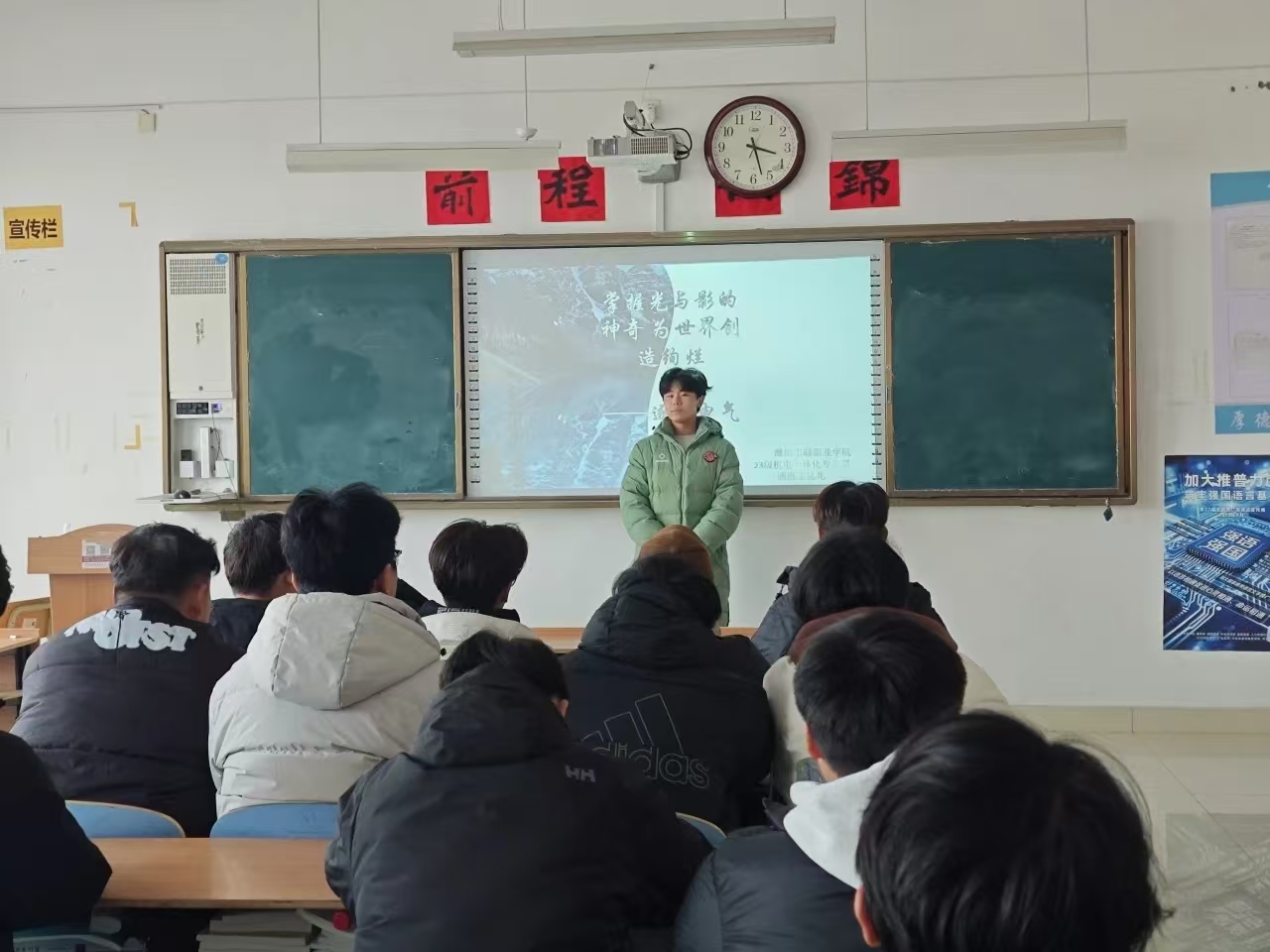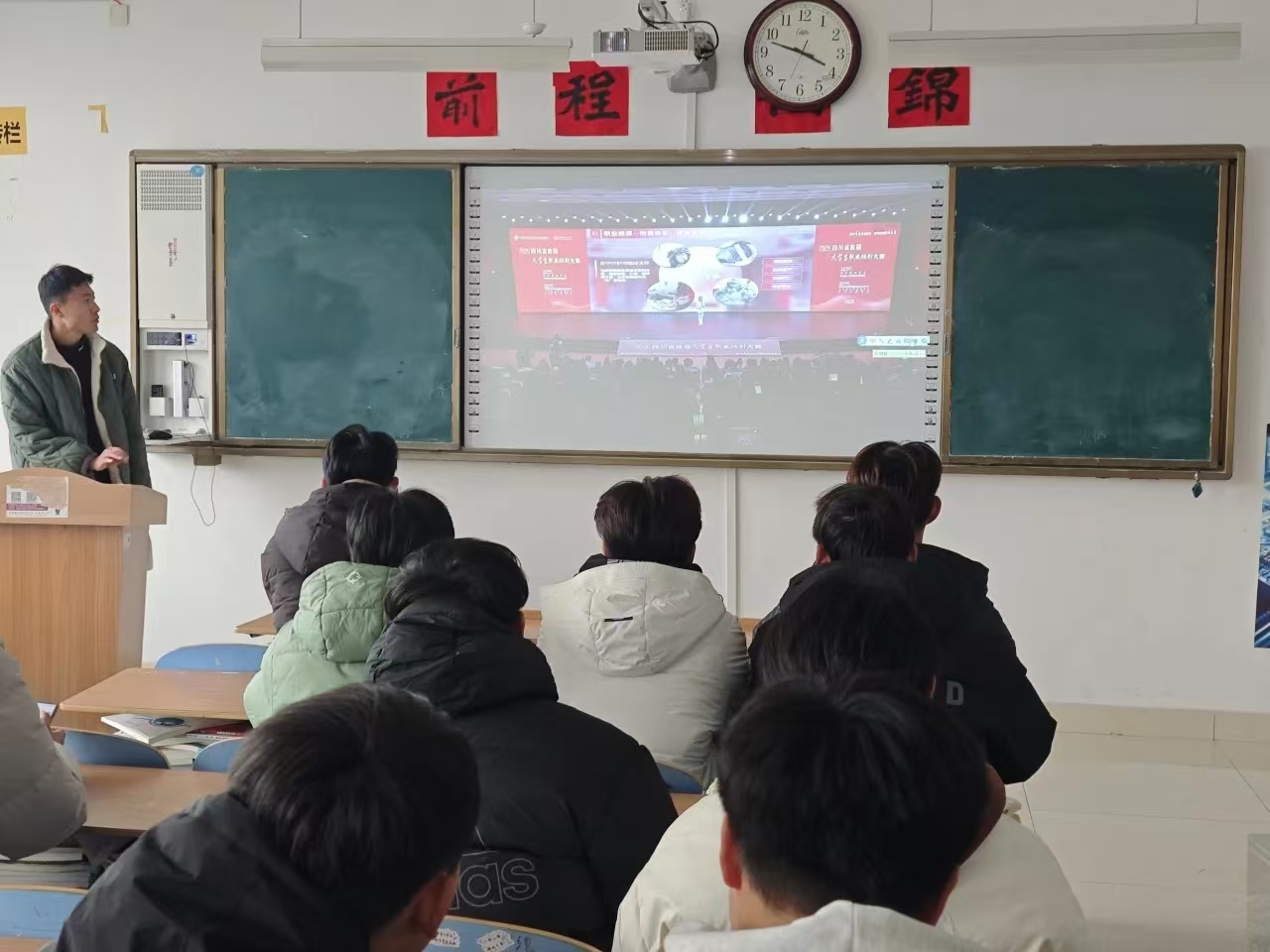 刘岩老师帮助同学们学习校赛的通知精神和目标要求,更好的帮助同学们参加职业生涯规划大赛。刘岩老师还宣读了机电与汽车工程学院推荐校赛作品名单,供同学们参考。