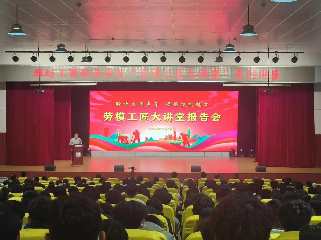 为弘扬学习劳模精神,让同学们明白劳动离不开人类,离不开社会 ,机电与汽车工程学院学生于2024年11月15日在图书信息楼第一报告厅参加“劳模工匠大讲堂”报告会 ,聆听大师声音 领悟技能魅力!