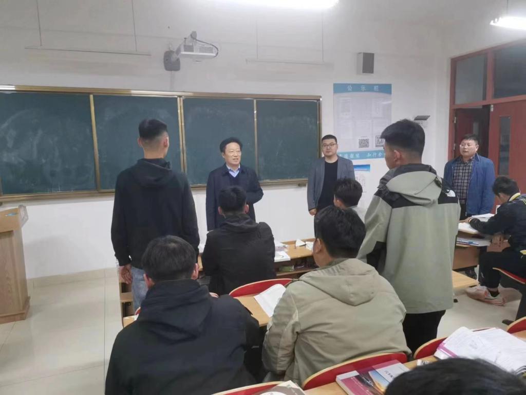 为深入贯彻党的二十大精神和全国全省高校思想政治工作会议精神,进一步构建学校大思政格局,全面落实全员育人、全过程育人、全方位育人的要求,2023年4月12日晚,校长张绍秋带领部分学校领导、老师深入到包靠班级2022级汽车制造与试验技术3班进行走访慰问。
