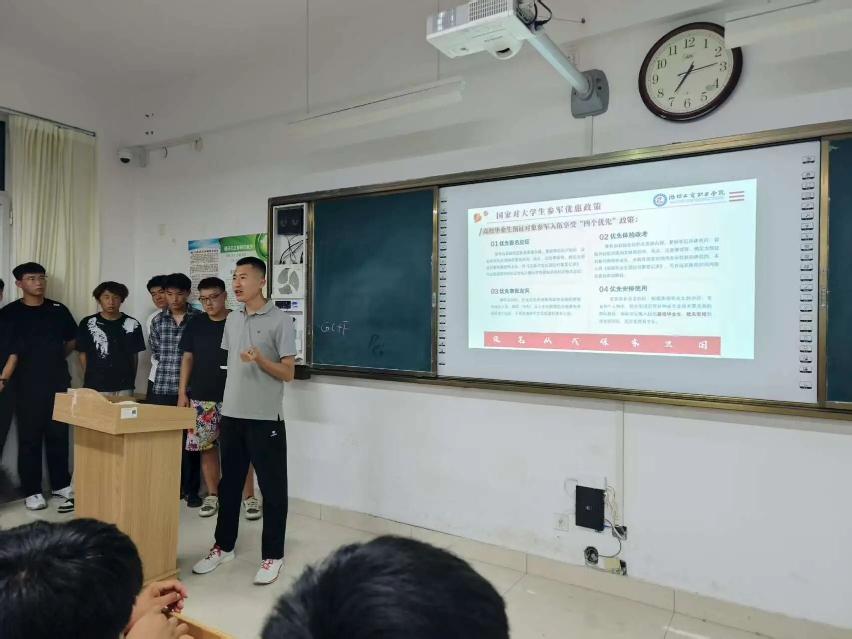 为响应国家征兵工作号召,鼓励优秀人才投身国防事业,同时为新生树立正确的军旅职业规划。9月4日,机电与汽车工程学院以征兵政策宣讲为契机,开展了一场军旅职业生涯规划教育。本次宣讲由学院征兵工作站刘岩老师主讲。