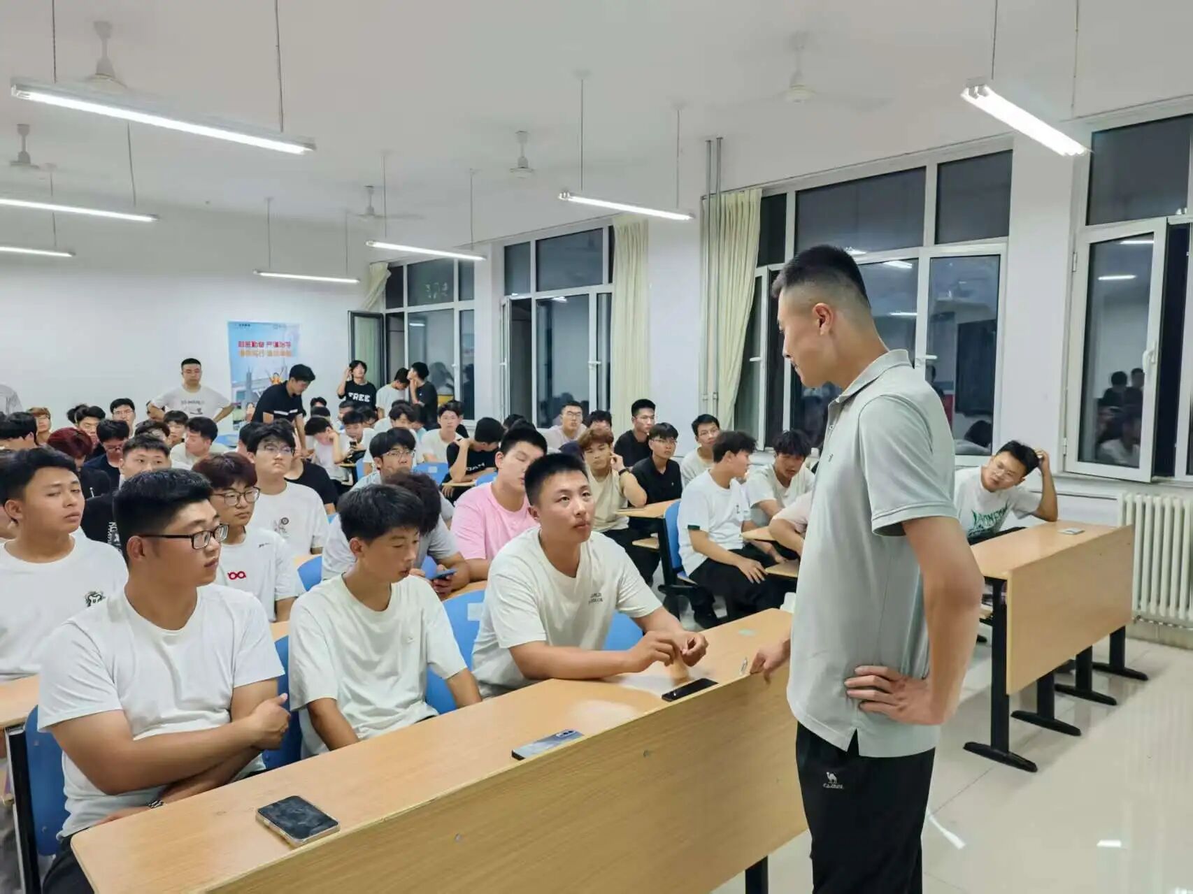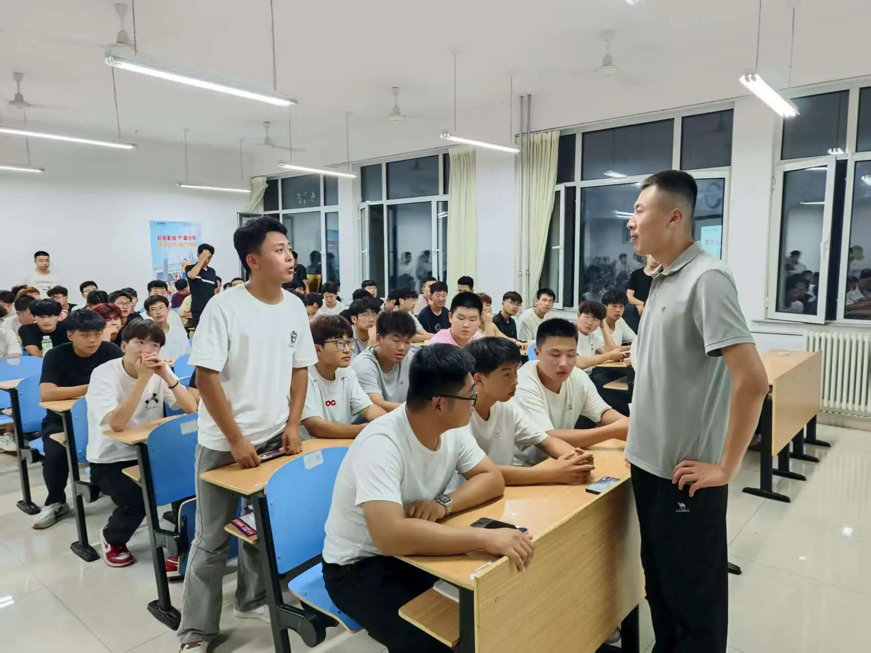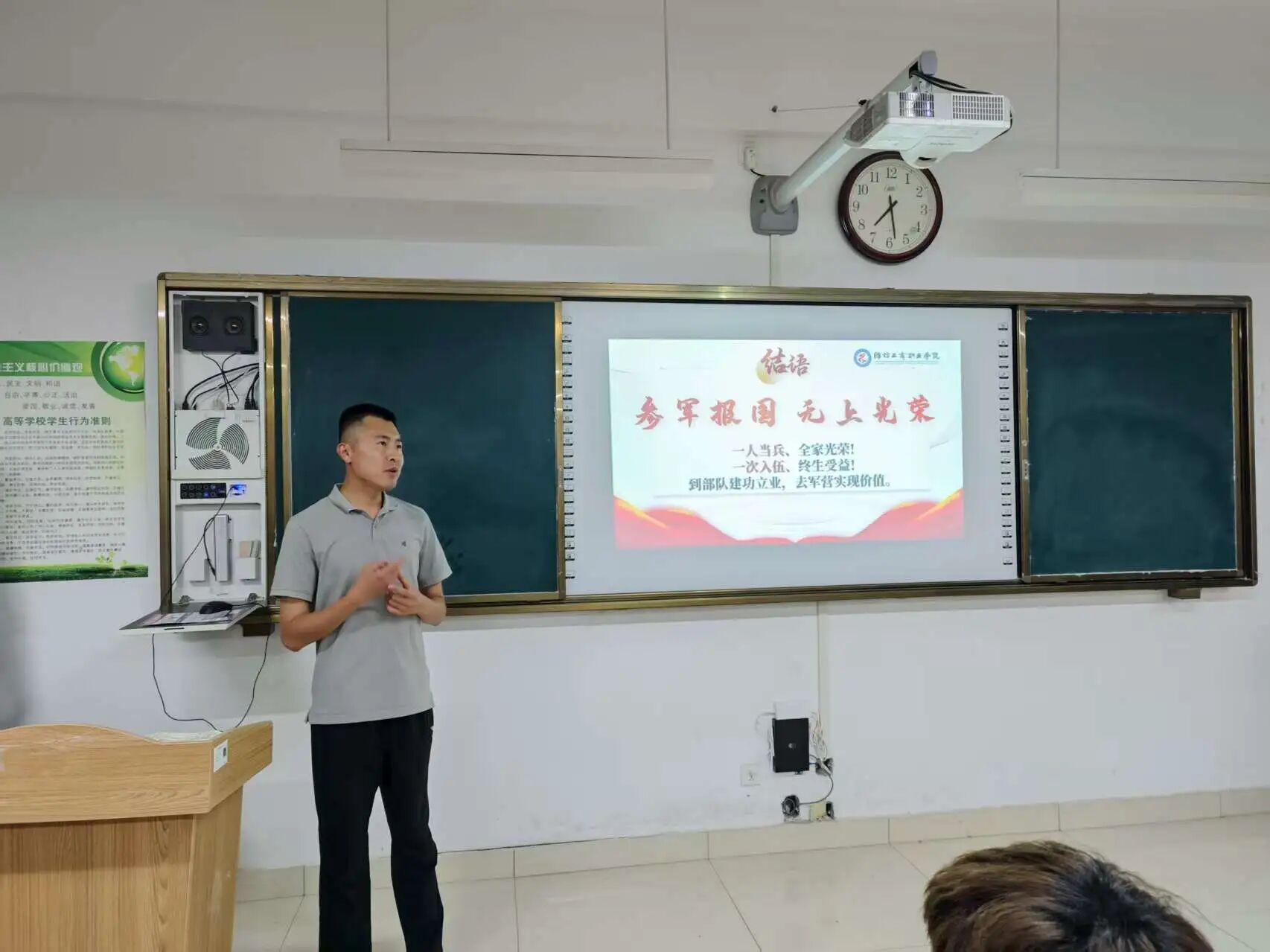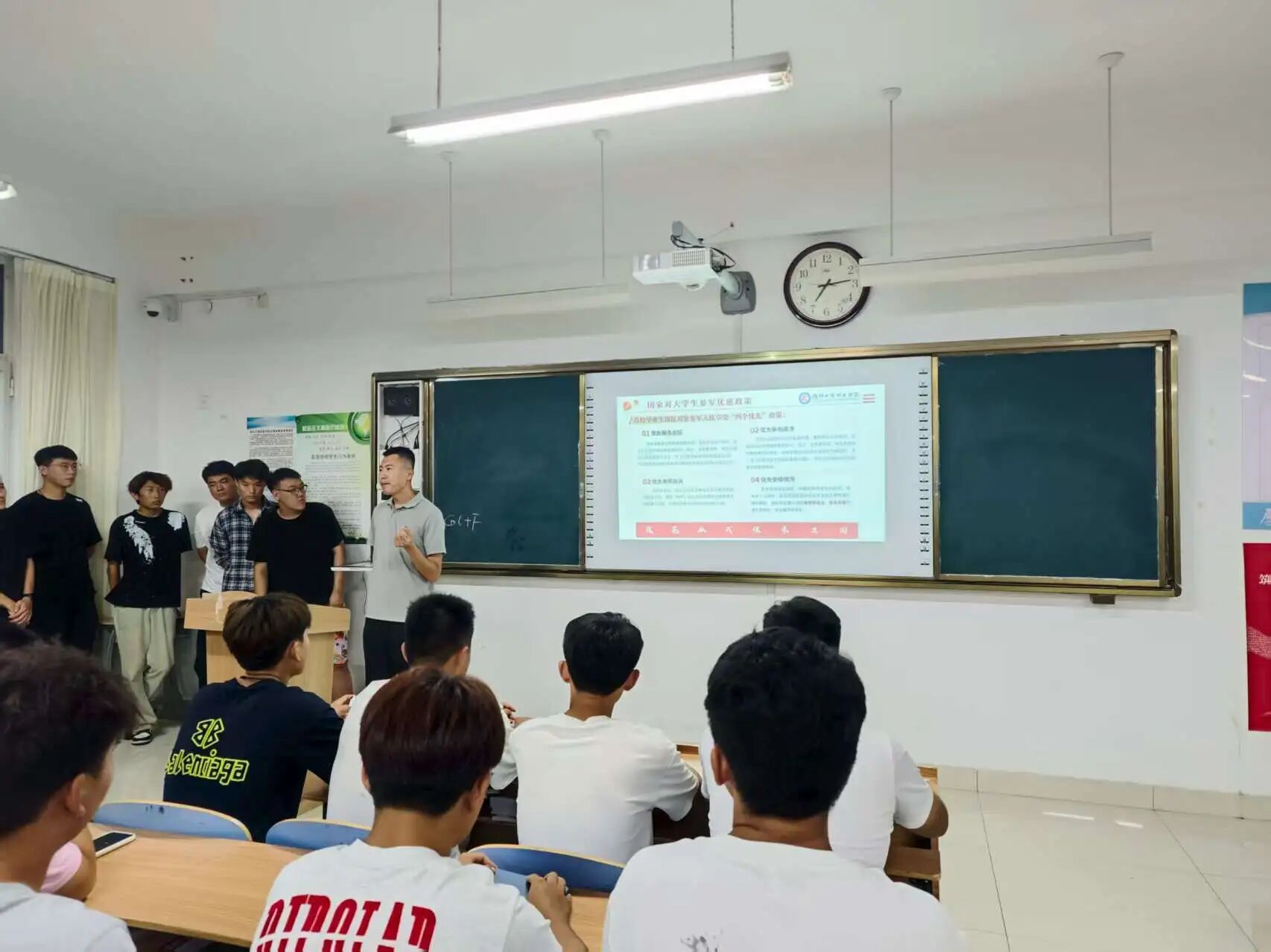 问答环节中,刘老师结合个人服役经历与工作经验,从应征报名到入伍后的发展晋升,为同学们进行了解答。