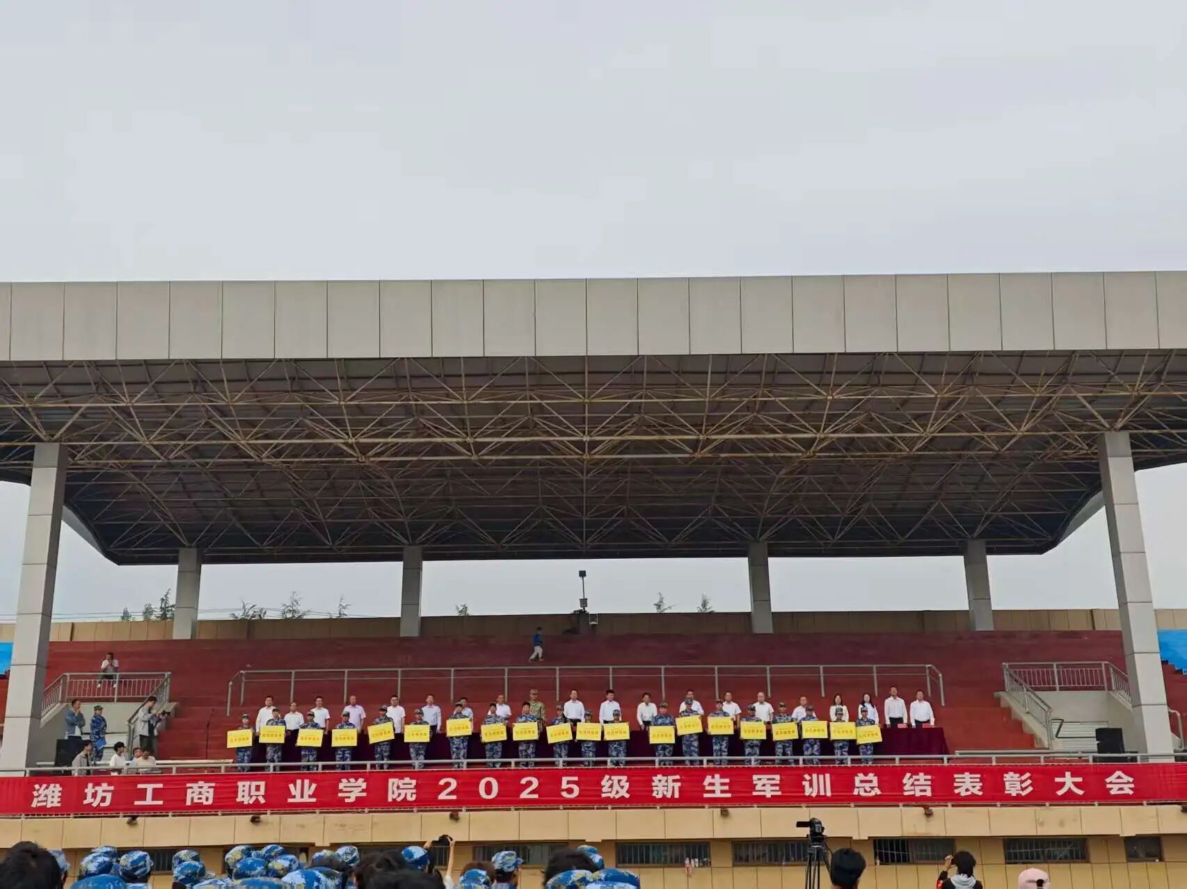 为表彰军训期间表现优异的个人与集体,树立榜样并进一步激发全体学生的国防情怀,9月21日上午8:30,我校正式举行2025级新生军训总结表彰大会。校级领导、各部门负责人、新生班主任及全体2025级新生共同出席了本次大会。