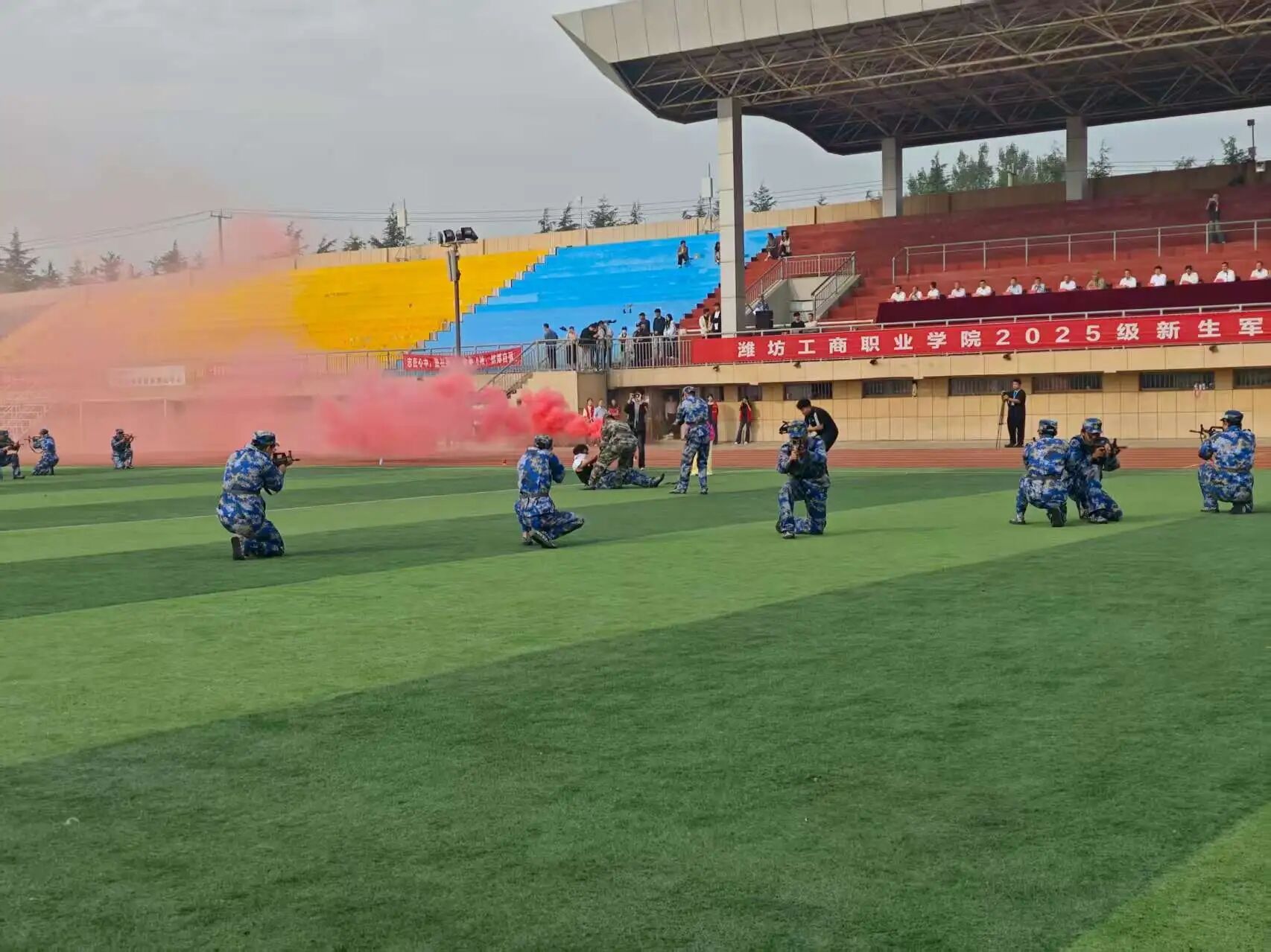 最后,校领导讲话,高度评价新生表现,肯定教官与工作人员付出,希望同学们延续军训精神,勤奋学习、进步,夯实未来基础。