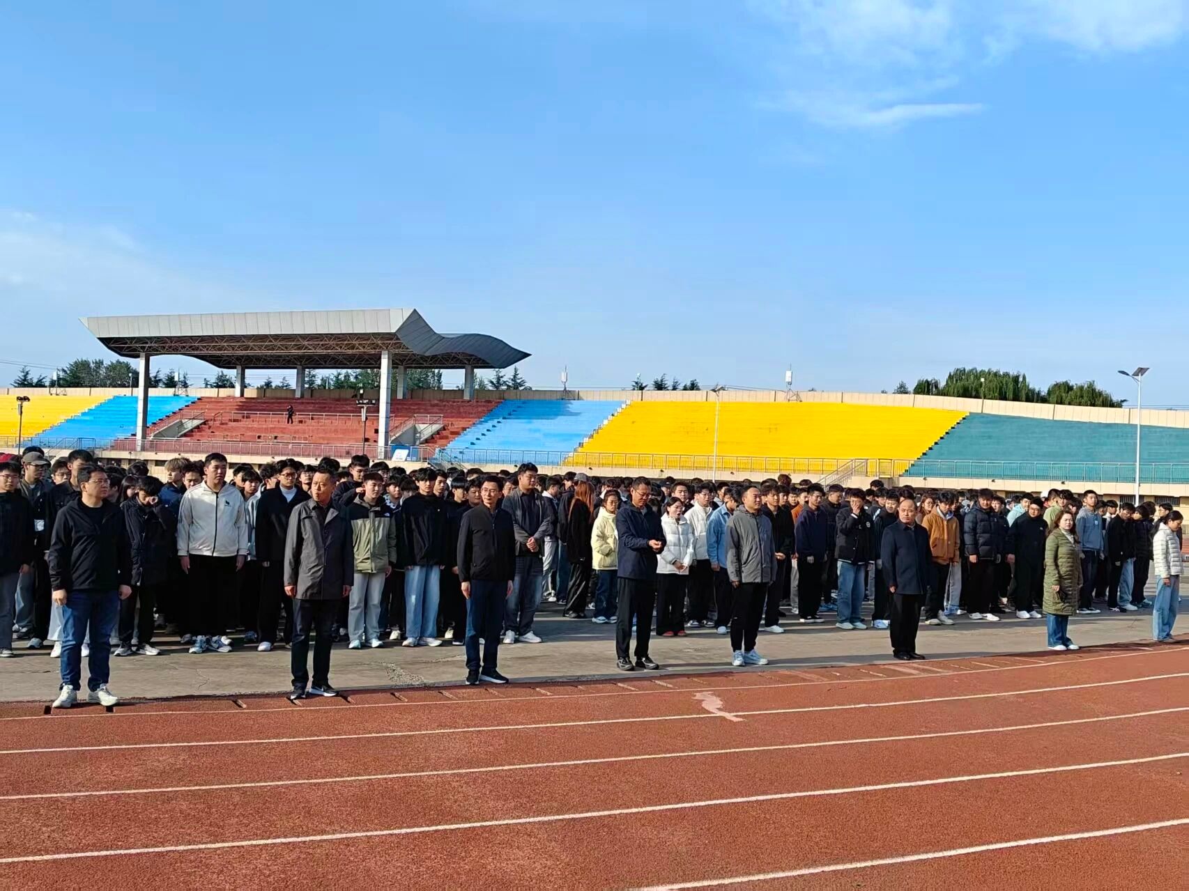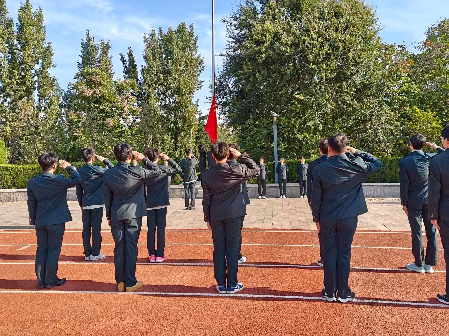 第一项升国旗仪式伴随着激昂的《义勇军进行曲》,五星红旗冉冉升起,全体师生肃立行注目礼,爱国情怀与青春责任感在晨光中凝聚。