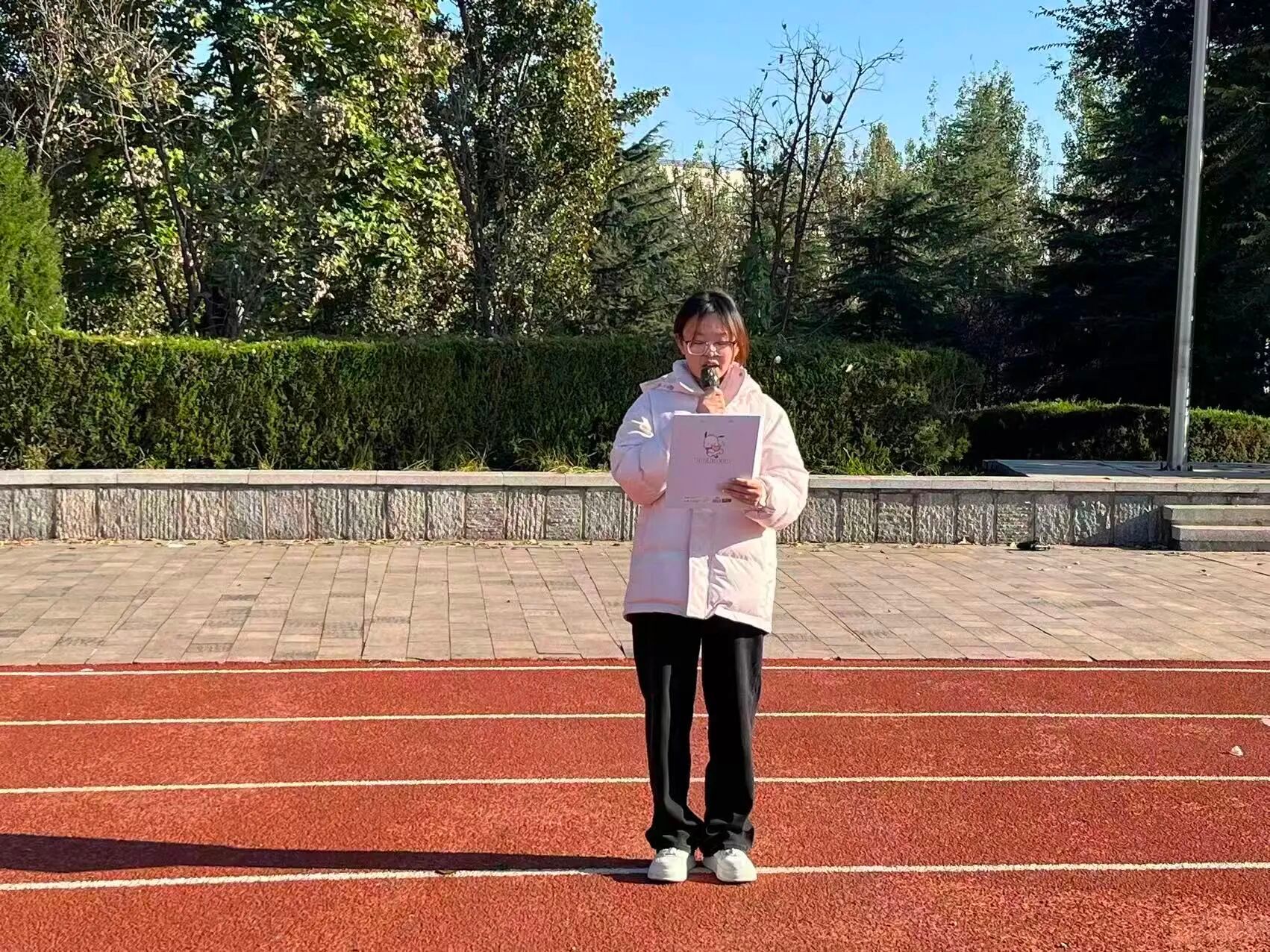 第二项由学生张含王进行国旗下的演讲,他提到“热爱祖国”从来不是课本里抽象的词汇,而是能感受到的澎湃心跳,这不仅是一名新生的感悟,更是万千学子在校园中与“祖国”同行的缩影。