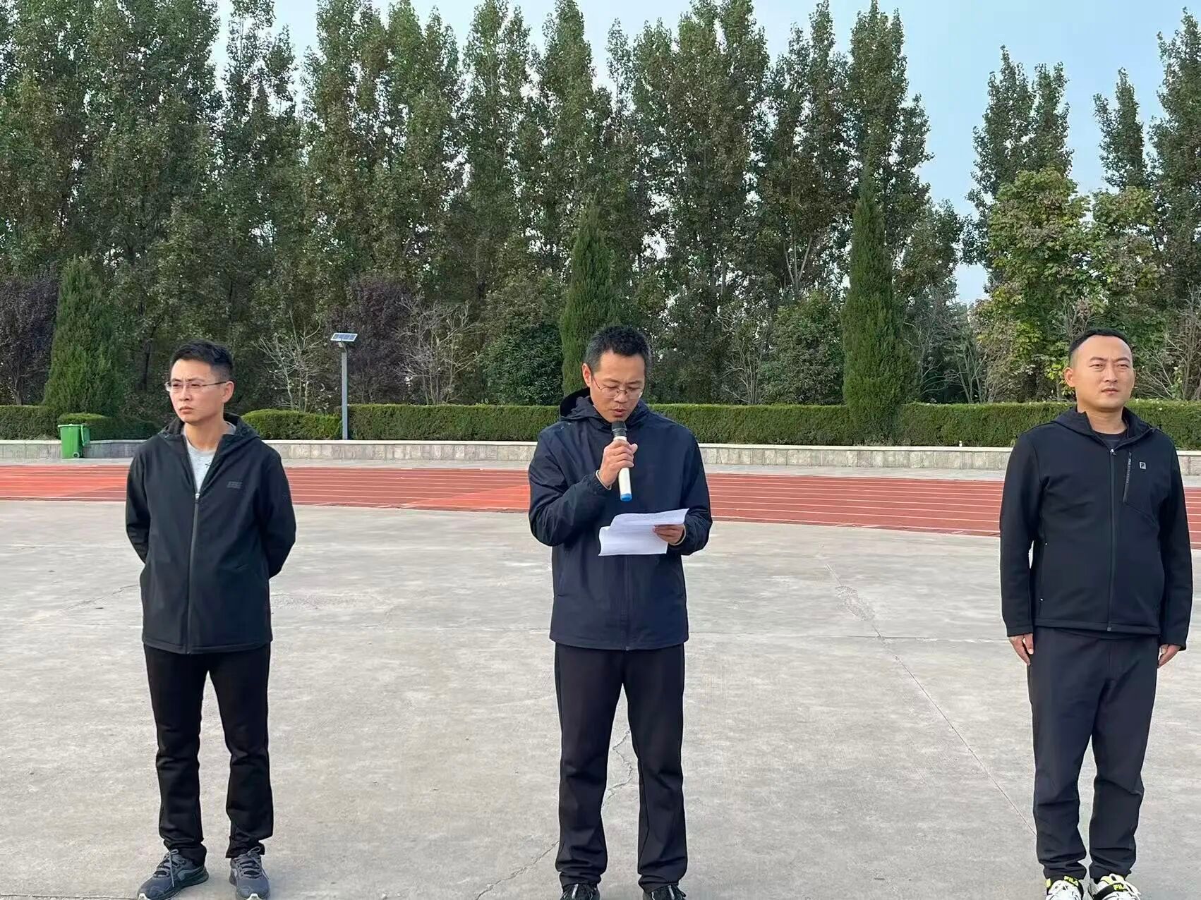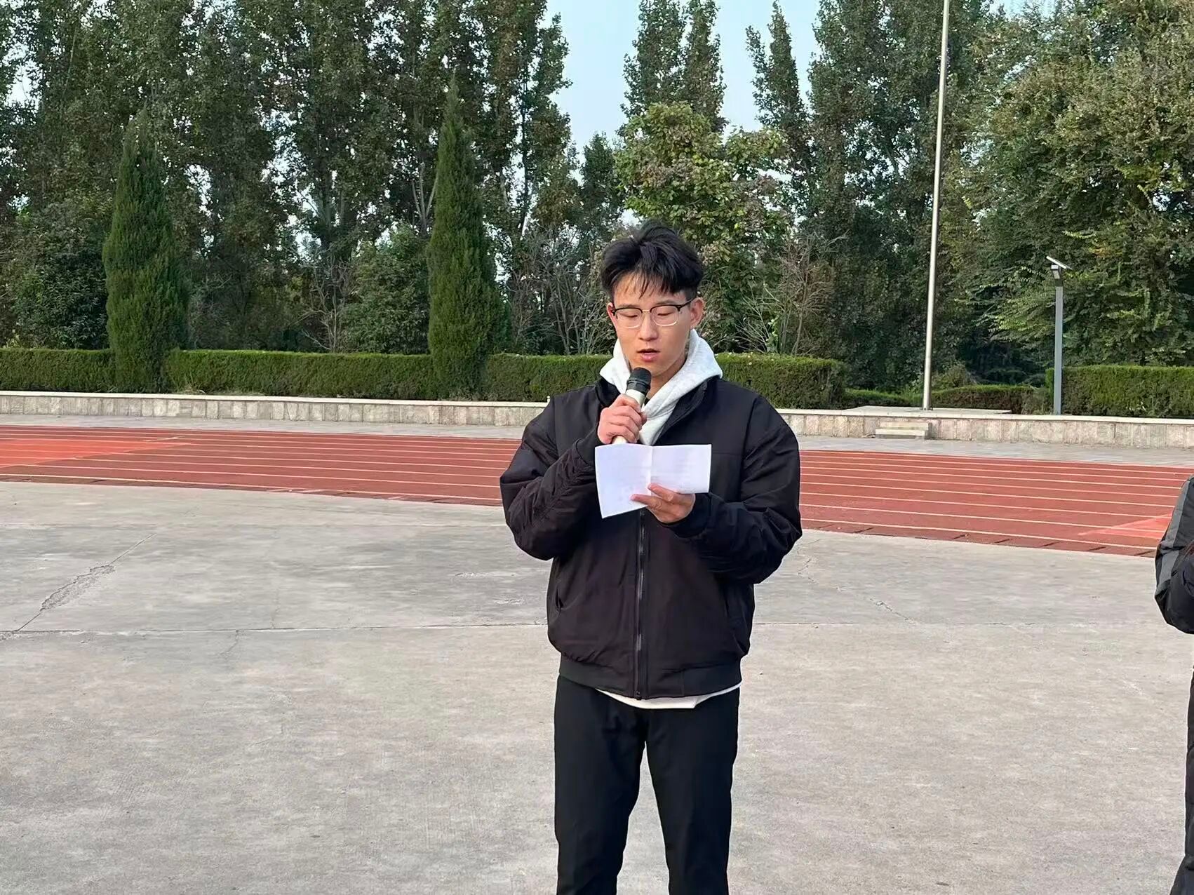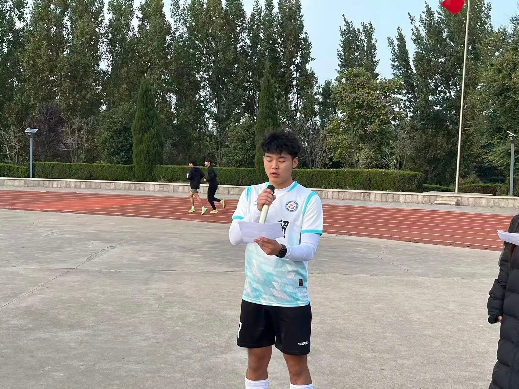 第四项,机电与汽车工程学院党支部书记王卫致辞,他上台致意后说:“金秋赛场聚活力,本次足球联赛是青春逐梦舞台,望同学们拼搏成长、师生借赛事爱运动,预祝联赛成功!”