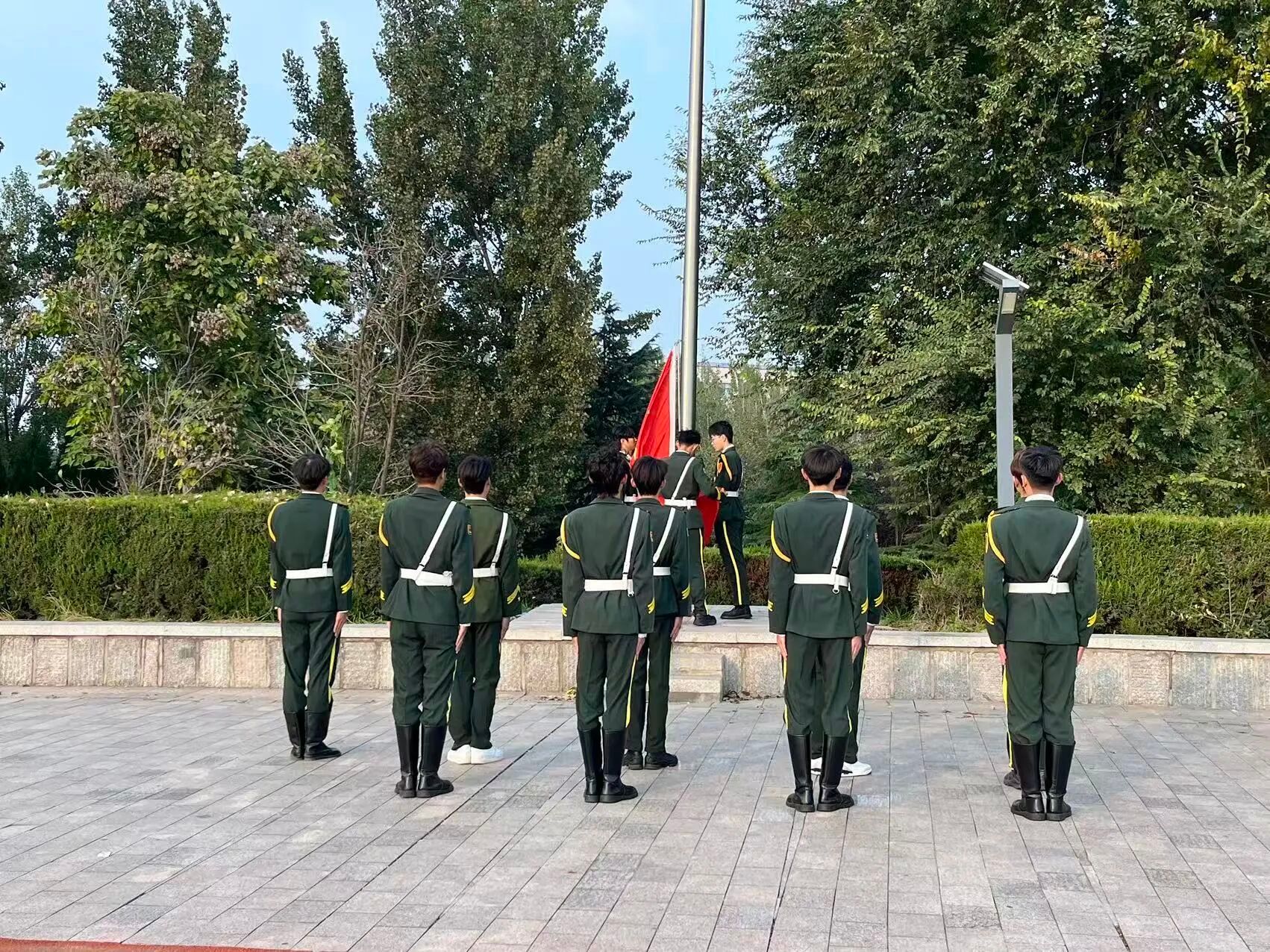 第一项议程升国旗、奏国歌。全体师生肃立面向国旗,参与庄严仪式;国旗手擎鲜艳国旗,满怀热忱朝气,迈铿锵步伐走来。