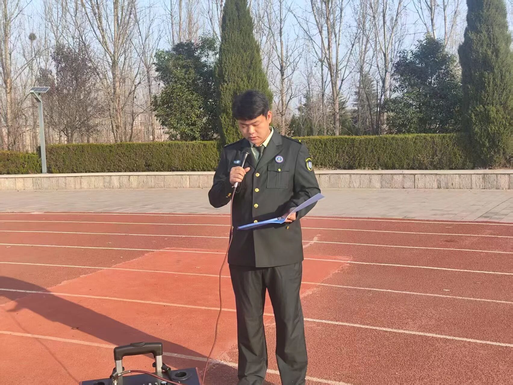 最后,苗教官进行最后总结指导并组织集体师生有序退场。