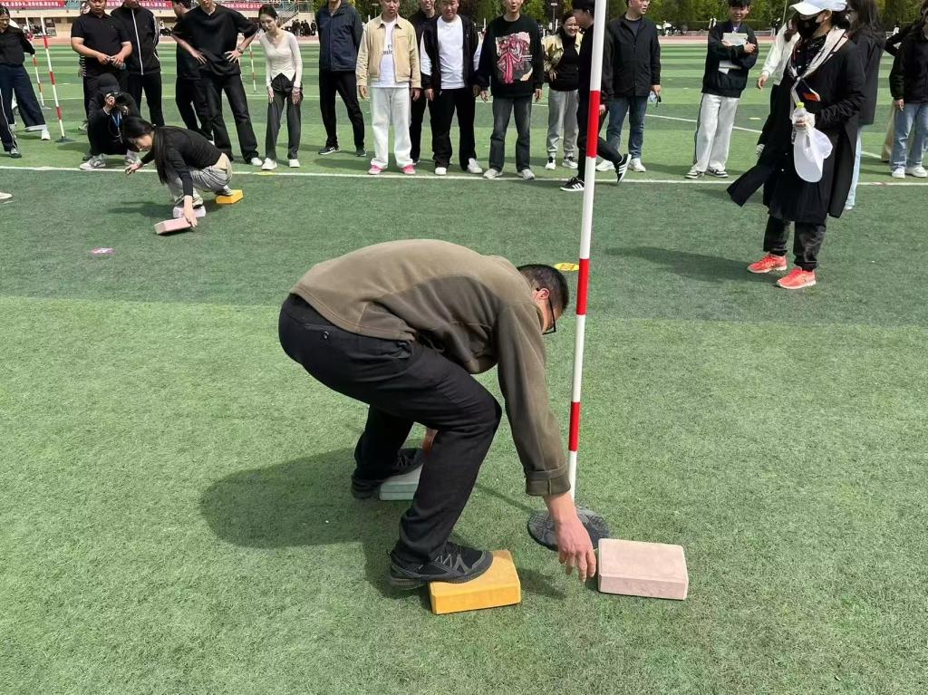 同时,机电与汽车工程学院的师生组合在趣味运动项目中展现出强大的实力与默契。蛇形跑接力比赛开始时我院师生目光坚定,紧紧盯着前方的障碍物,灵活地穿梭其中。即使遇到强劲的对手,比分落后也毫不气馁,相互鼓励,调整战术 ,老师们沉稳指挥,学生们奋力拼搏,师生之间的默契配合展现得淋漓尽致。在摸石过河接力比赛中我院师生弯下腰,小心翼翼地将“石头”向前放置,双脚精准地踩在上面,交替前行。同学们动作敏捷,如履平地;老师则凭借沉稳的步伐,稳健推进。