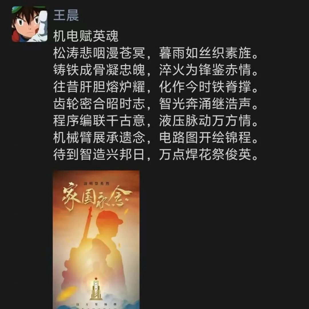 学院的党团组织高度重视此次活动,通过开展主题团日、线上讨论等形式,引导学生铭记历史,缅怀先烈。老师们指出,在网络时代,线上祭祀不仅是一种创新的缅怀方式,更是传播红色文化、传承革命精神的有效途径。同学们在表达追思的同时,也能让更多人了解革命历史,凝聚奋进力量。在今后的学习与生活中,机电与汽车工程学院的党团员们将以先辈为榜样,传承红色基因,践行初心使命。在专业学习上,勤奋刻苦,勇于创新,努力掌握先进的机电与汽车技术,为推动我国制造业的高质量发展贡献力量;在社会实践中,积极参与志愿服务,关心关爱他人,以实际行动诠释党团员的责任与担当,书写新时代的青春华章。