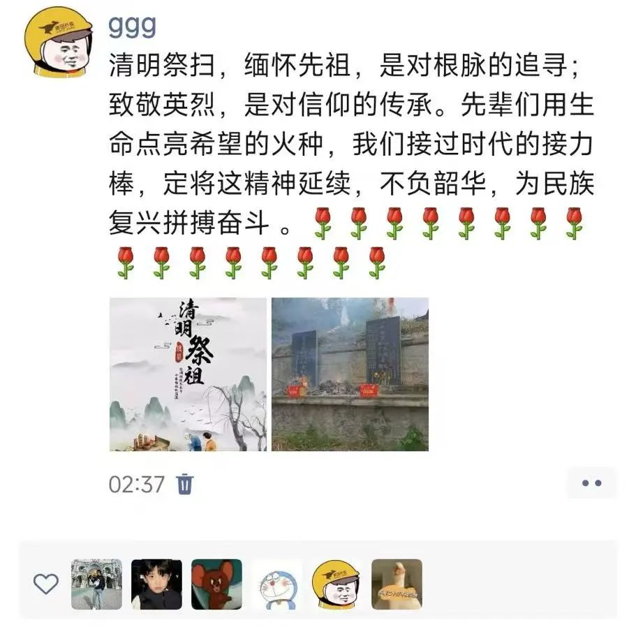 作为新时代的青年,机电与汽车工程学院的同学们深知身上肩负的责任与使命。在此次网上祭祀活动中,大家积极参与,通过朋友圈分享英烈故事、发布缅怀文案,表达对先辈的敬仰和追思。一张张承载历史记忆的老照片,一段段感人至深的文字,不仅是对先辈们的深切缅怀,更是对红色精神的传承与弘扬。同学们纷纷表示,先辈们的英勇事迹和崇高精神是党和国家的宝贵财富,激励着大家不断砥砺前行。
