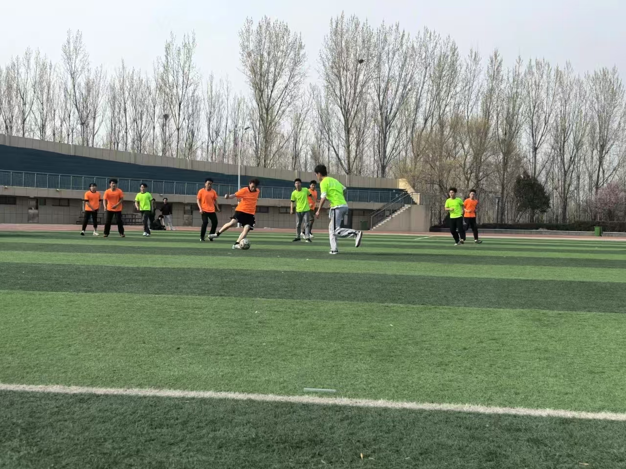 为丰富学生课余生活,强健体魄,展现青春活力。2025年3月26日机电与汽车工程学院班级足球赛在学校足球场地正激情的进行着。在昨天比赛基础上,今天的比赛更加激烈和精彩。