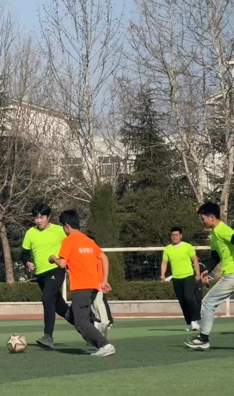 第二场比赛伊始,24级汽车制造一班和24级机电一体化五班引人注目。24级汽车制造一班的宋明辉就展现出了强烈的进攻欲望,他速度极快,灵活地穿梭在对方的防线之间。走进任何一场足球比赛现场,你都会被那种紧张而热烈的氛围所感染。球员们在绿茵场上奔跑如飞,眼神中透露出对胜利的渴望。而在这激烈的对抗背后,是无数次训练中培养起来的默契。最终24级汽车制造一班以2:0赢下比赛。