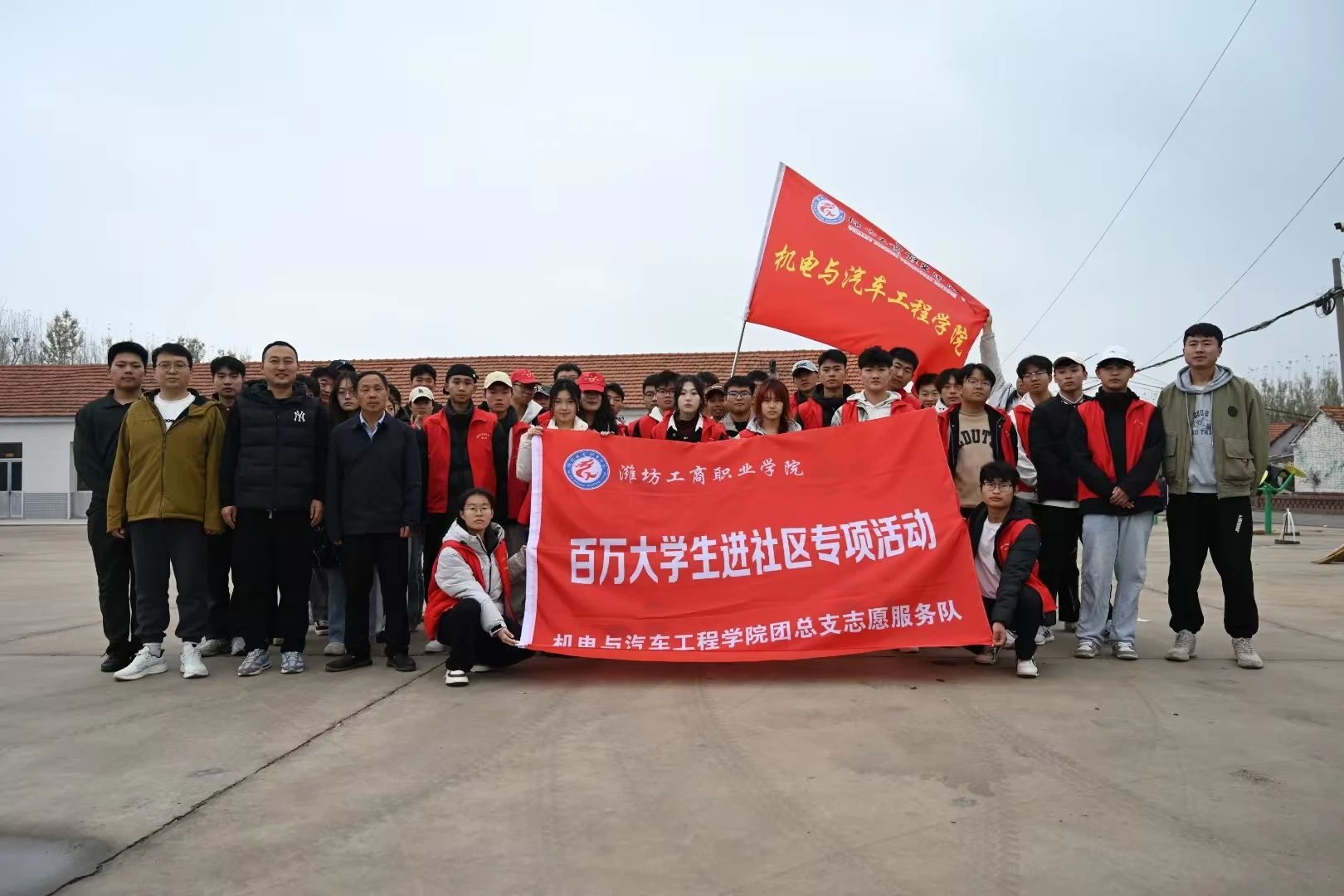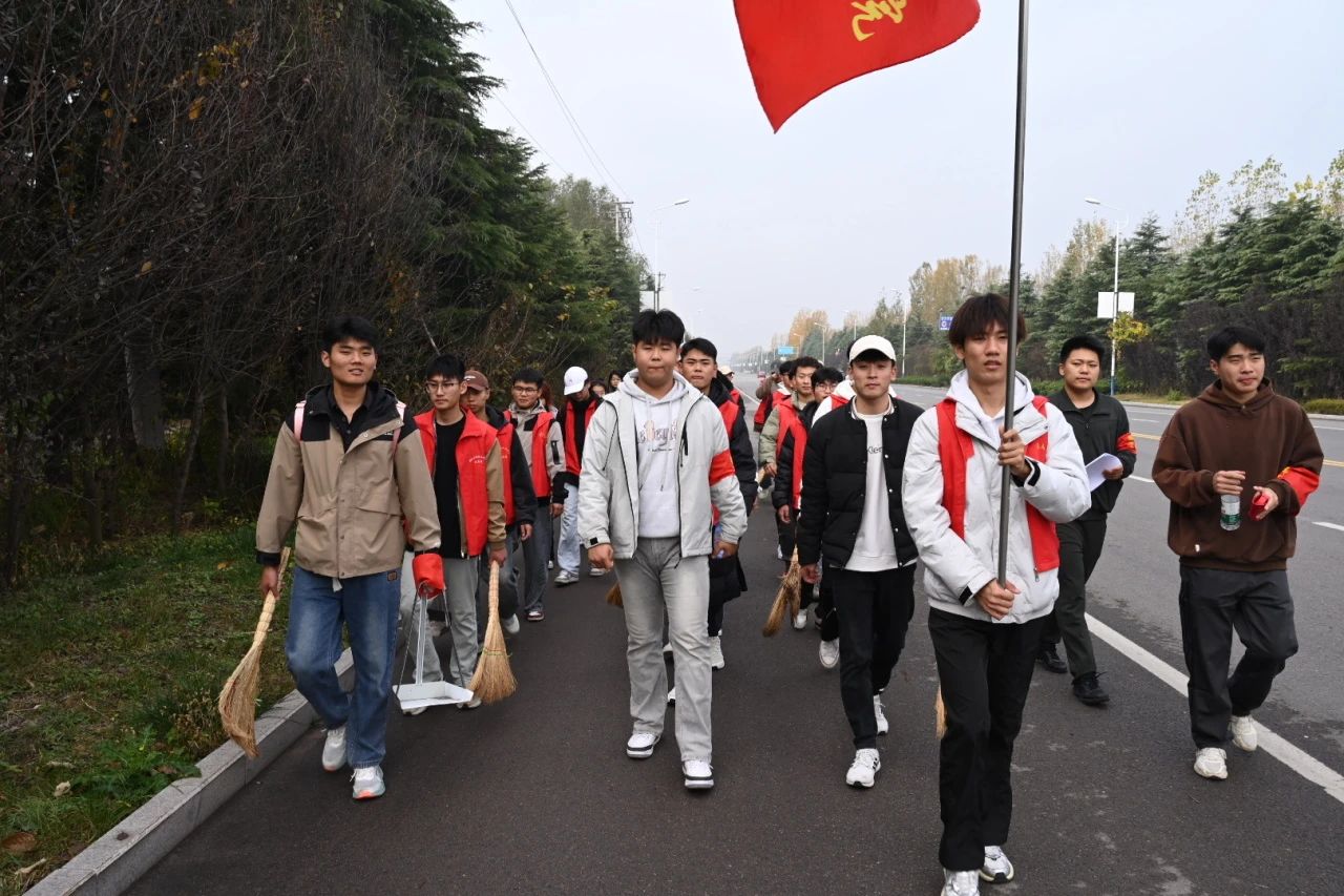 2024年11月15日在导员和学生的积极响应下,机电与汽车工程志愿者们欢声笑语踏上前往刘家村的道路,展现了潍坊工商学生朝气蓬勃的精气神。护旗手中旗帜随风飘动,吹拂着少年积极奉献的心灵