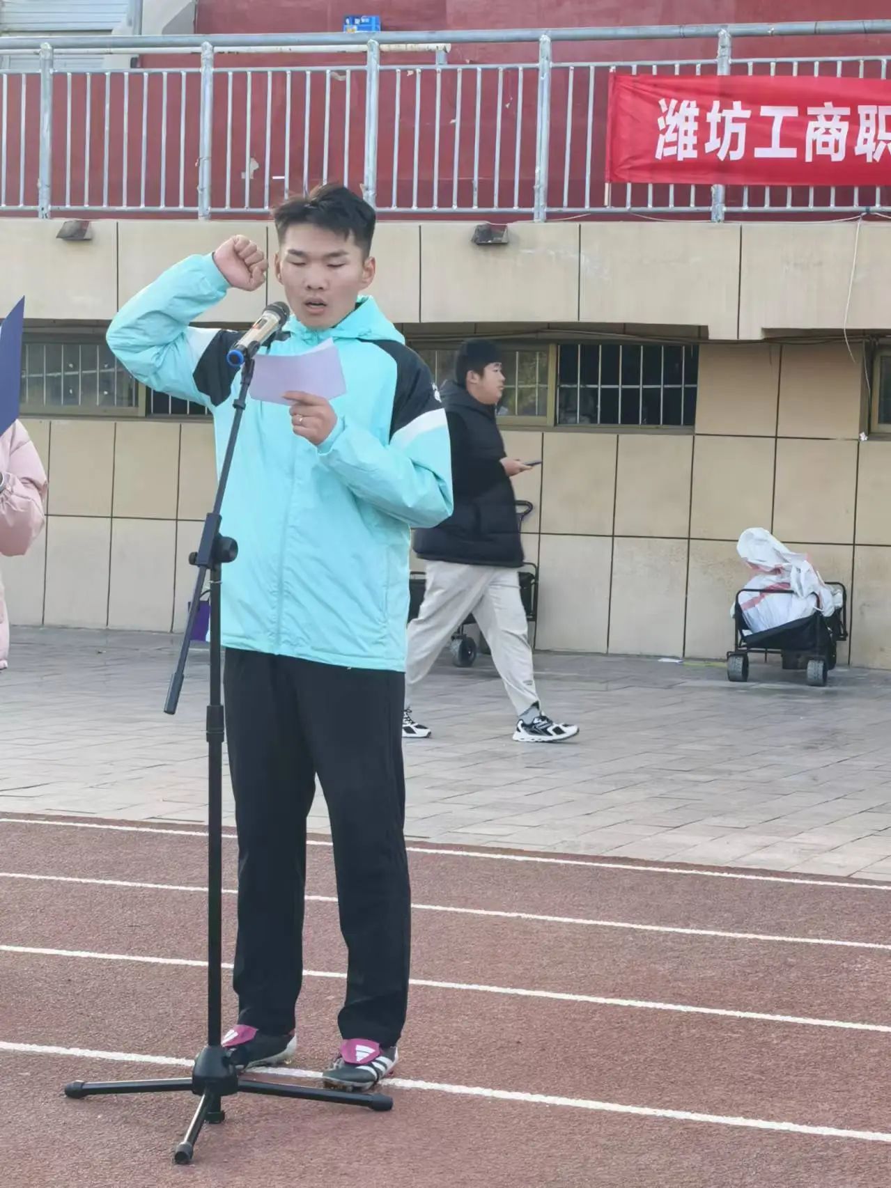 2024级医养健康学院运动员代表杨登育宣誓。校足球协会负责人2023 级机电与汽车工程学院张哲宣誓:栽判们一定会乘持公平、公正、公开的原则,认真履行裁判职责,确保比赛的顺利进行。