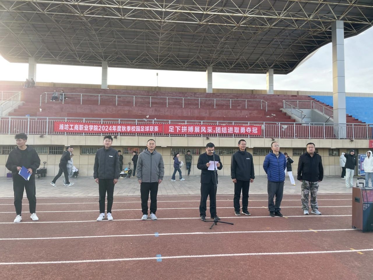 秋高气爽的十一月,我们迎来了潍坊工商职业学院“风生水起群英会,足下拼搏展风采"2024年度秋季校园足球联赛。今天,我们齐聚在这里,共同见证这场充满激情与活力的体育盛会的开幕。