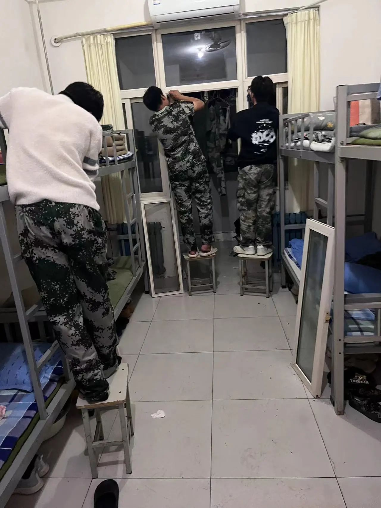 这几位同学们按照要求认真负责地打扫了寝室的每个角落,并且热情礼貌地欢迎教官来参观指导,教官对各个寝室的内务整理提出了针对性的建议。在教官的指导下,同学们的叠被子技巧大有提升,寝室也变得更加明亮宽敞。