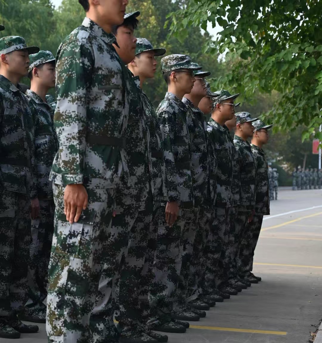 站军姿,是军训的开篇之课。同学们如同挺拔的青松,在阳光下纹丝不动。每一次的坚持,都是对自我意志的挑战;每一秒的忍耐,都是向成长迈出的坚实一步。那坚定的眼神,望向的是远方的梦想;那笔直的脊梁,撑起的是青春的担当。仿佛在告诉世界,我们不再是温室里的花朵,而是能够经受风雨洗礼的勇士。