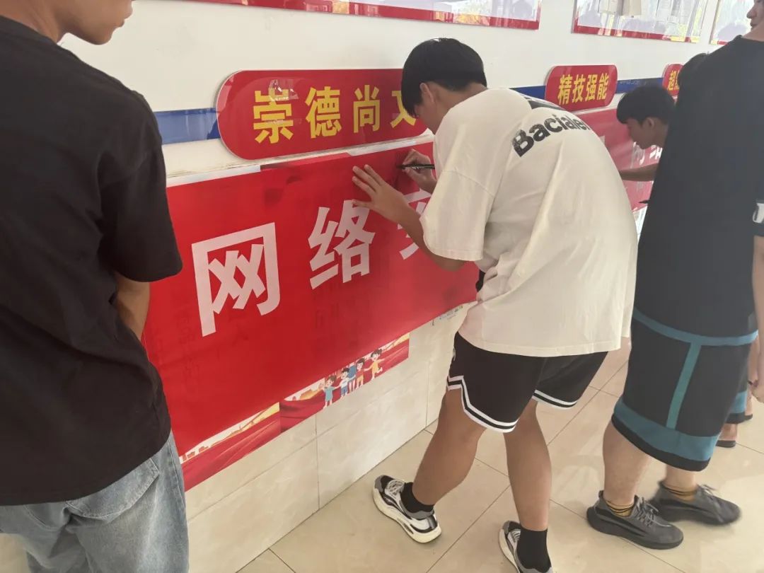 2024年9月11日下午14点30分为了进一步强化师生的责任感和使命感,我校特别举办了“网络安全为人民,网络安全靠人民”签名活动。同学们纷纷在横幅上签下自己的名字,用实际行动承诺将网络安全意识融入日常生活,共同维护网络空间的和谐与安全。这份承诺不仅是对自己的要求,更是对社会的责任。