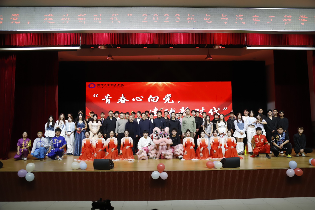 12月12日晚,“青春心向党,建功新时代”2023机电与汽车工程学院文艺汇演在学校第一报告厅举行。潍坊工商职业学院校长张绍秋,党委副书记、执行校长郑志松,学生处处长柴元昌,莅临晚会现场。机电与汽车工程学院班子成员王泌宝、王卫、徐砚全、吕宜忠出席活动。辅导员、任课教师、2023级新生约1000人现场参加活动。其余师生通过抖音直播收听收看。
