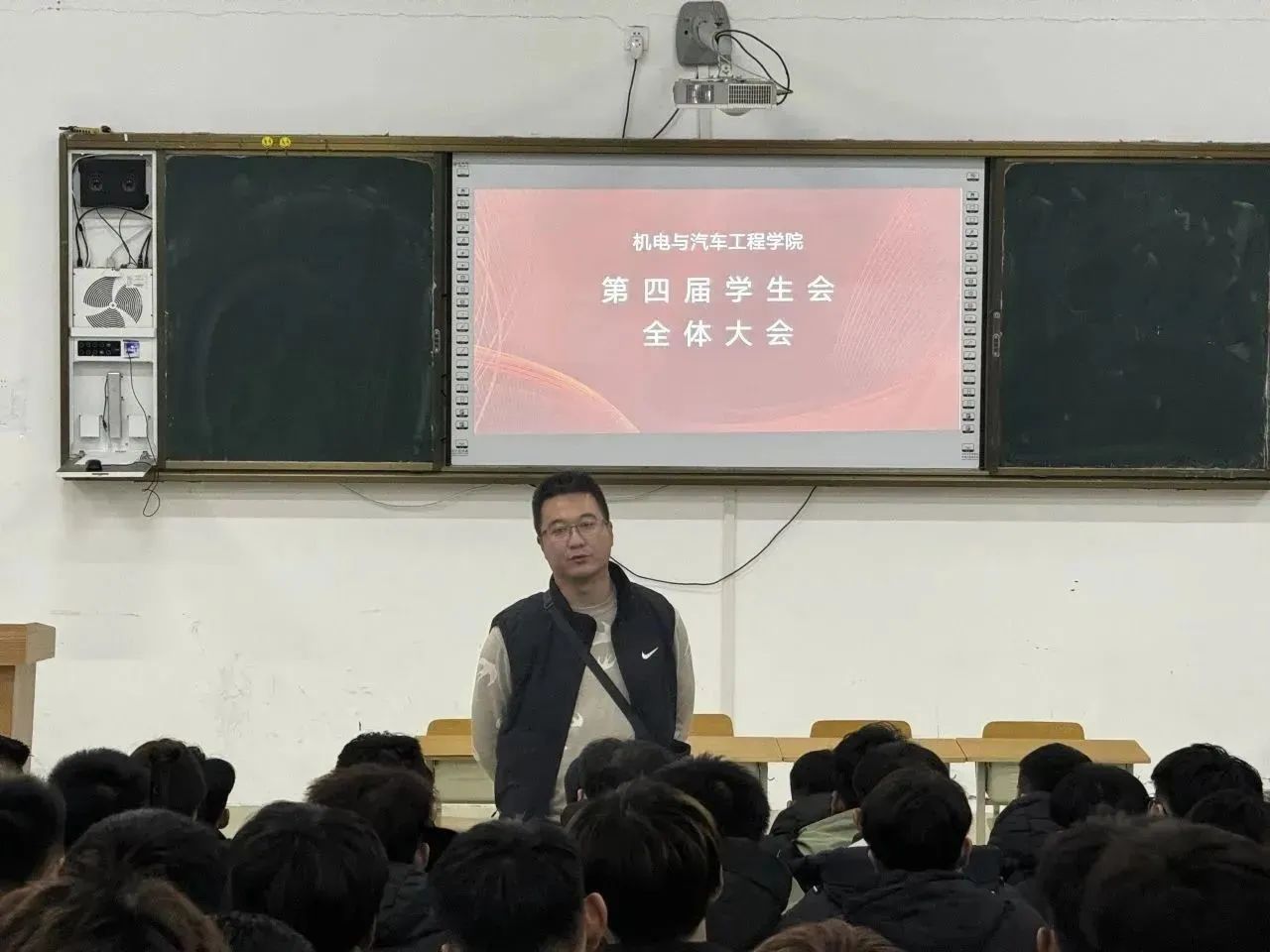 为了培养优秀的学生会成员。2023年11月20日,机电与汽车学院召开了第四届学生会全体大会。由徐砚全书记为我们主持。