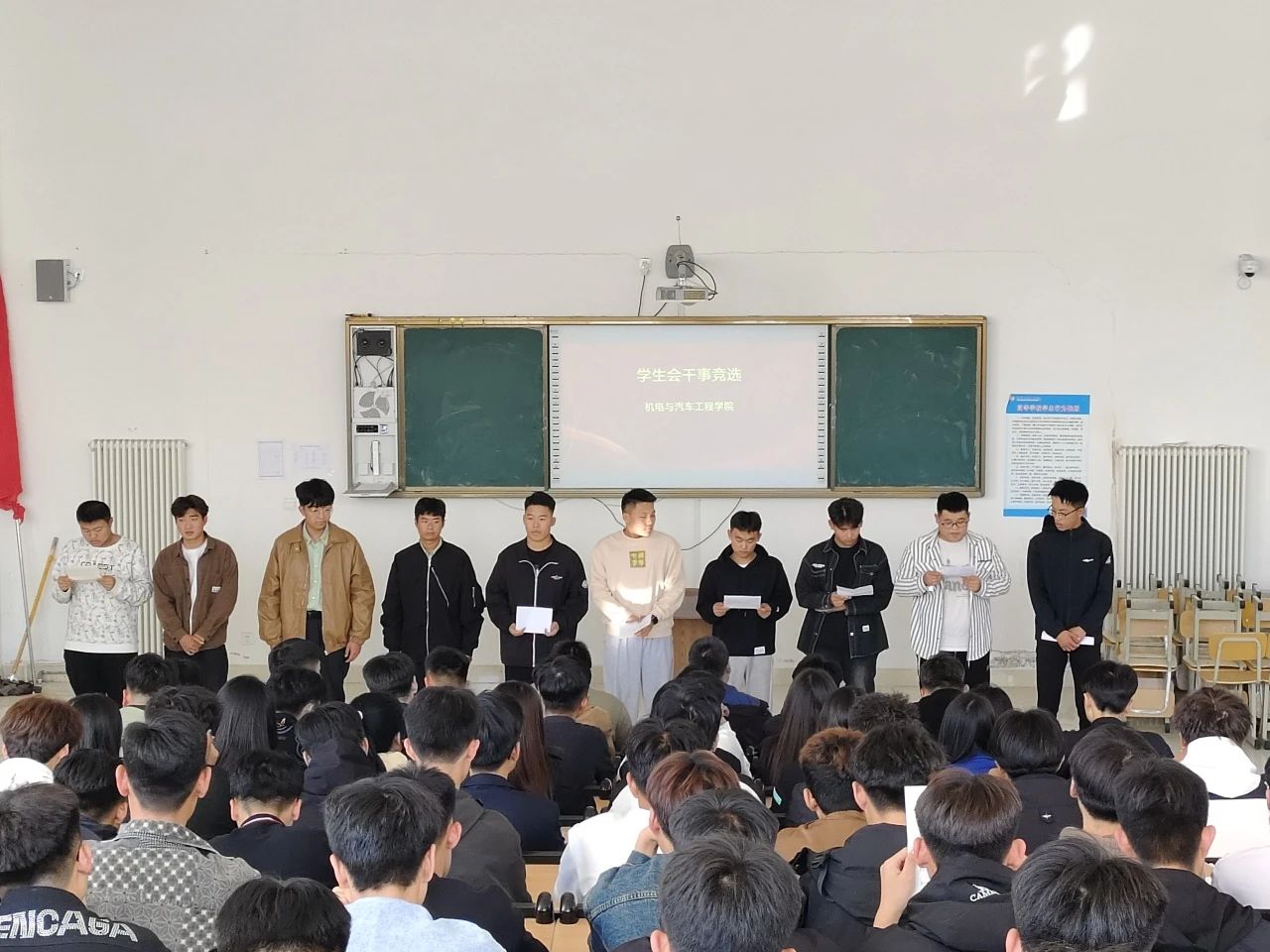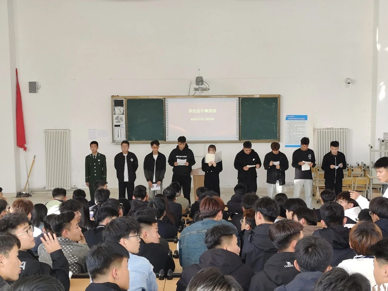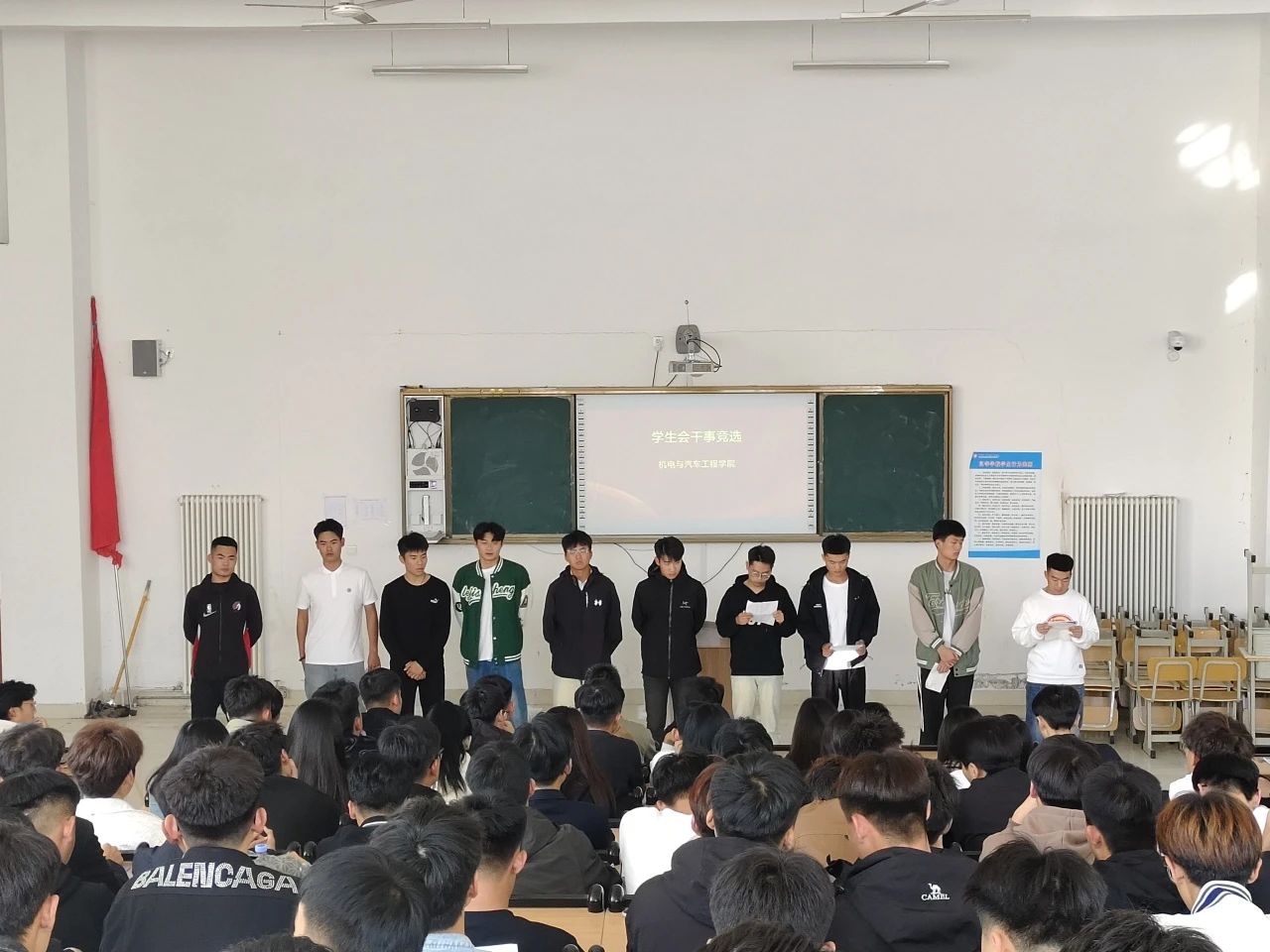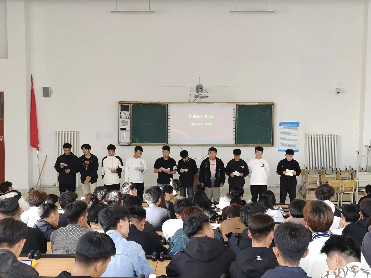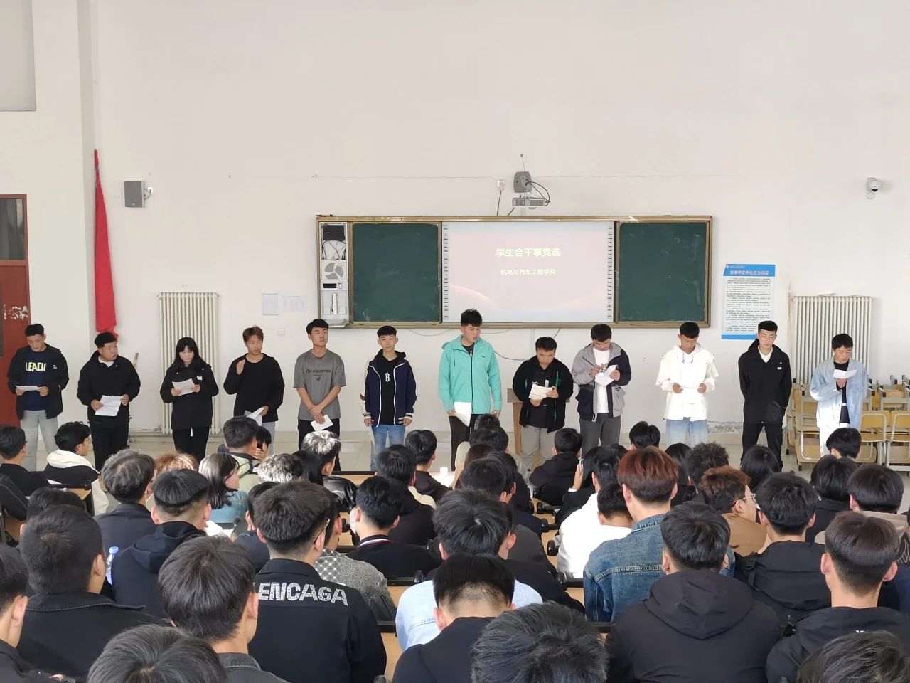 为给学院学生会注入更多新鲜血液,2023年10月27日,机电与汽车工程学院学院于学生会干事竞选大会。本次竞选大会由我院王卫老师,徐砚全老师,学生会主席团成员,部长、副部长担任评委,2023级有意参加竞选的同学依次上台进行演讲。