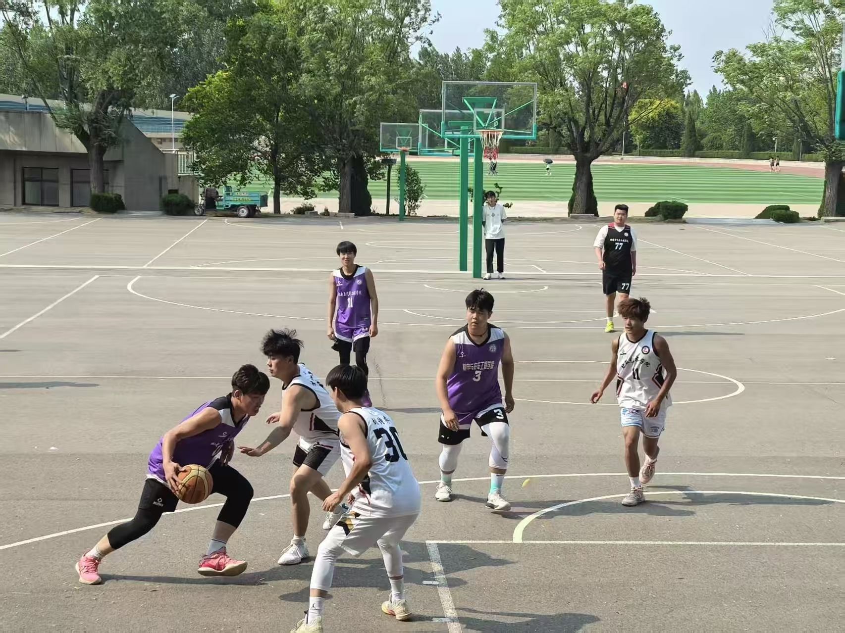 在阳光洒满校园的美好时节,为了增强身体素质,促进学生身体健康,丰富校园生活,2025年6月9日,潍坊工商职业学院篮球比赛正如火如荼地进行着。