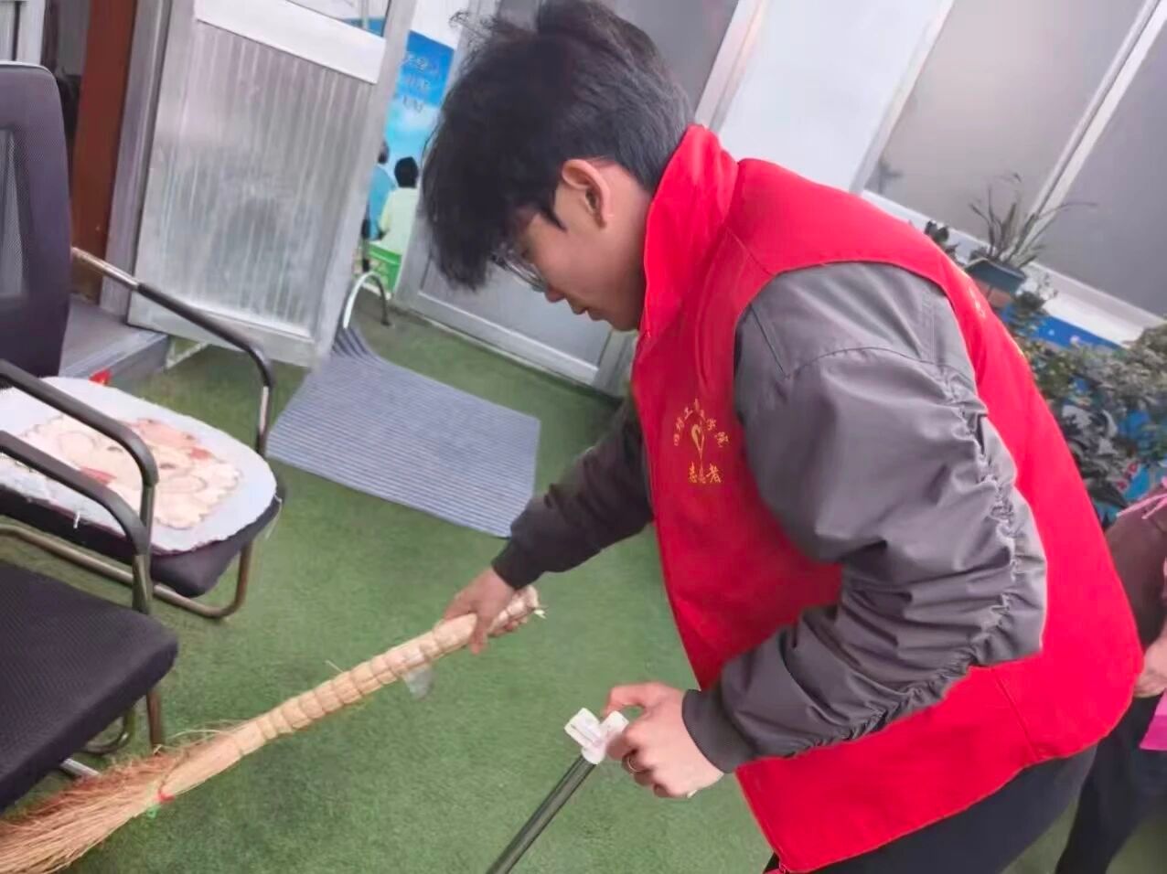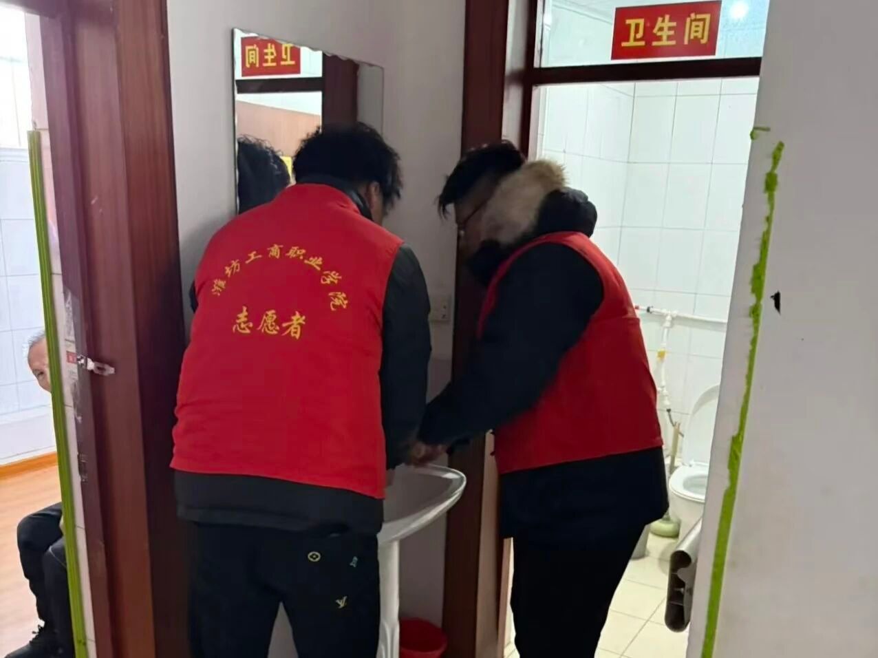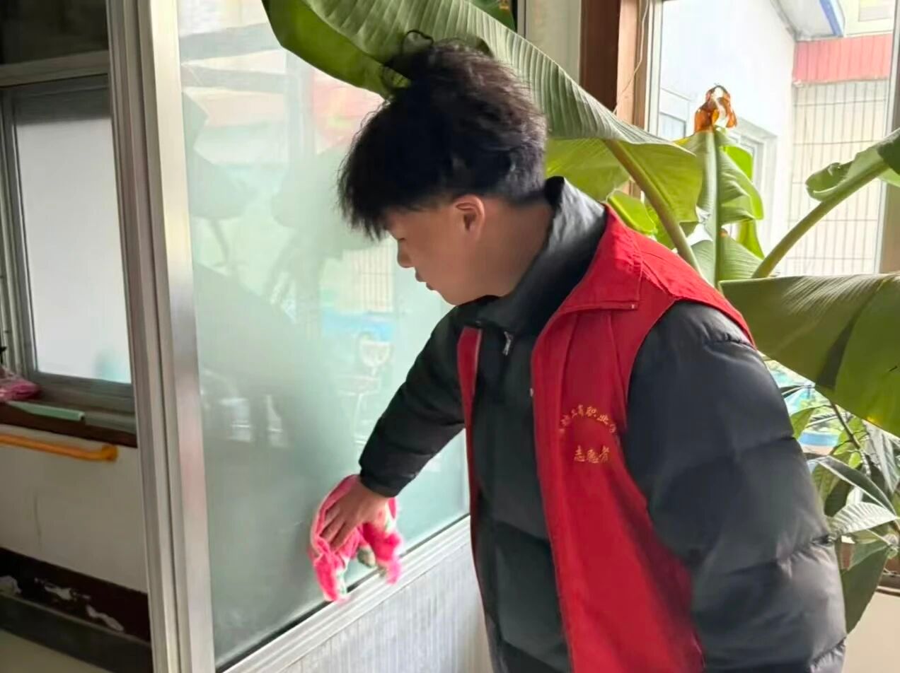 志愿者们与老人们围坐成圈,在细碎的家常与泛黄的往事里,让时光慢了下来。与此同时,拖把与地板摩擦的轻响、抹布擦拭玻璃的沙沙声,让敬老院的冬日漾起融融暖意。