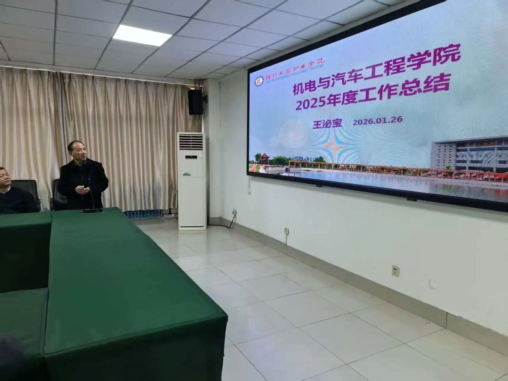 首先王泌宝院长提到2025年度学院党支部被学校推荐参评国家级“样板党支部”,还通过学院官方微信公众号等平台发布,展现了学院在多方面的进展,同时对2026年重点工作进行了明确部署,为学院全年发展指明了方向。