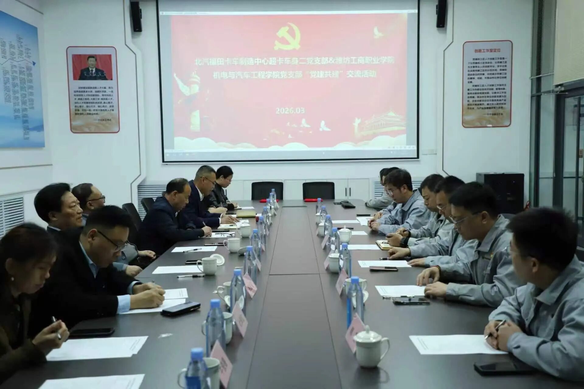 为深化产教融合,推动校企合作走深走实,切实提升人才培养质量,3月23日下午,潍坊工商职业学院校长张绍秋、副校长唐德良、合作办学处处长侯国强、机电与汽车工程学院院长王泌宝、学院党支部书记王卫等学院领导及教师代表,专程前往北汽福田卡车制造中心诸城厂区开展 “党建共建” 交流活动,实地走访企业生产一线,慰问教学实践学生,并与企业共商合作发展大计。