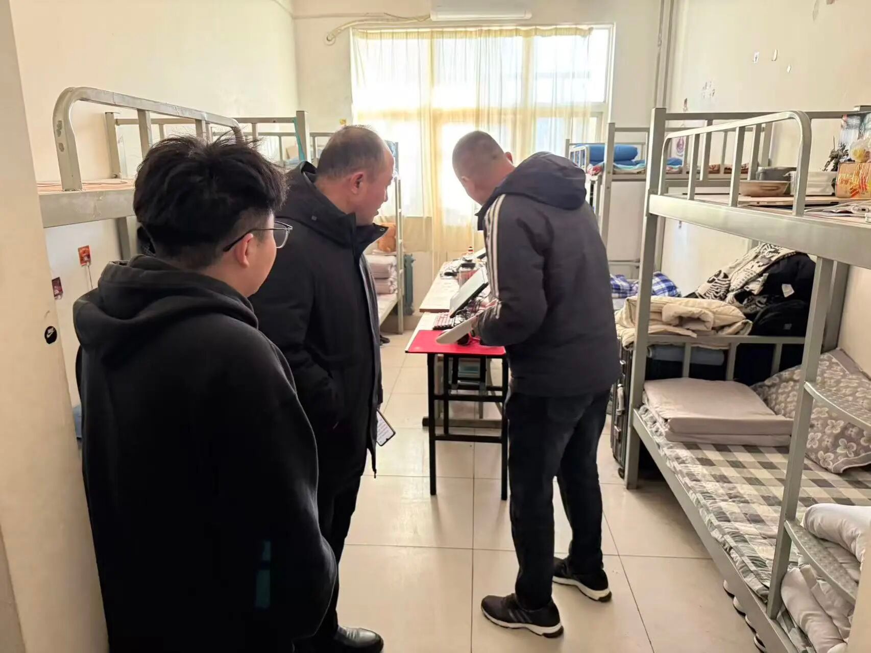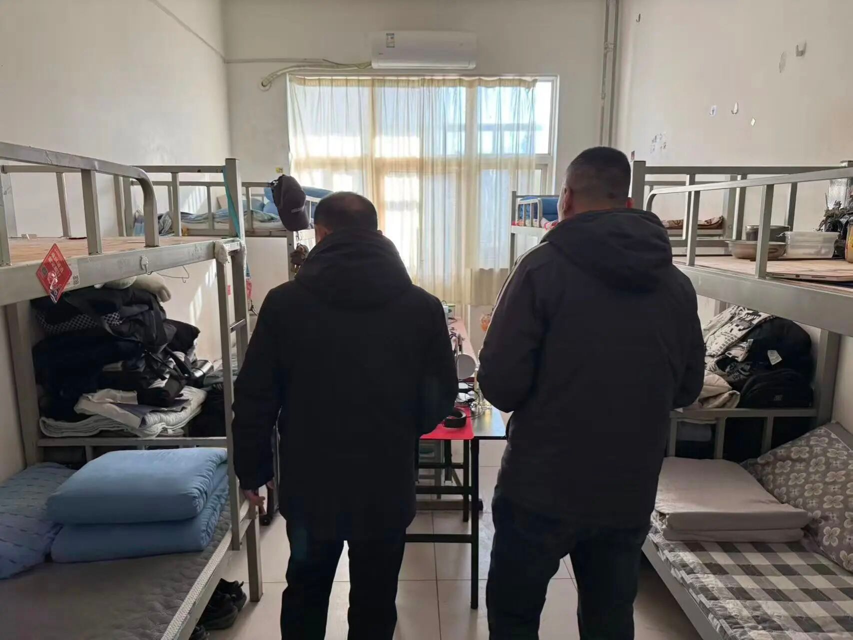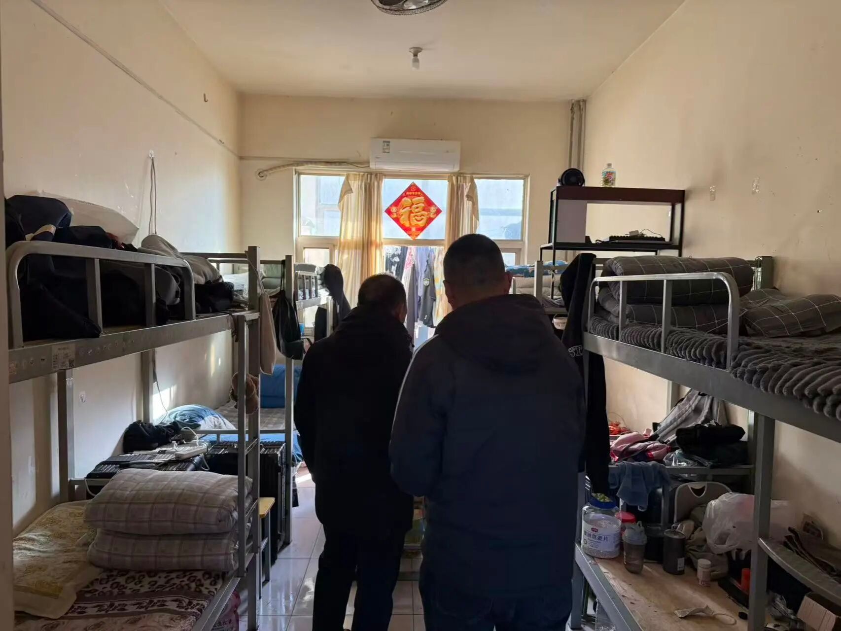 检查过程中也发现了一些问题,个人物品收纳分类不明确,卫生死角清理不彻底,生活用品摆放缺乏整齐度且有随意堆放的现象,整体视觉效果欠佳。