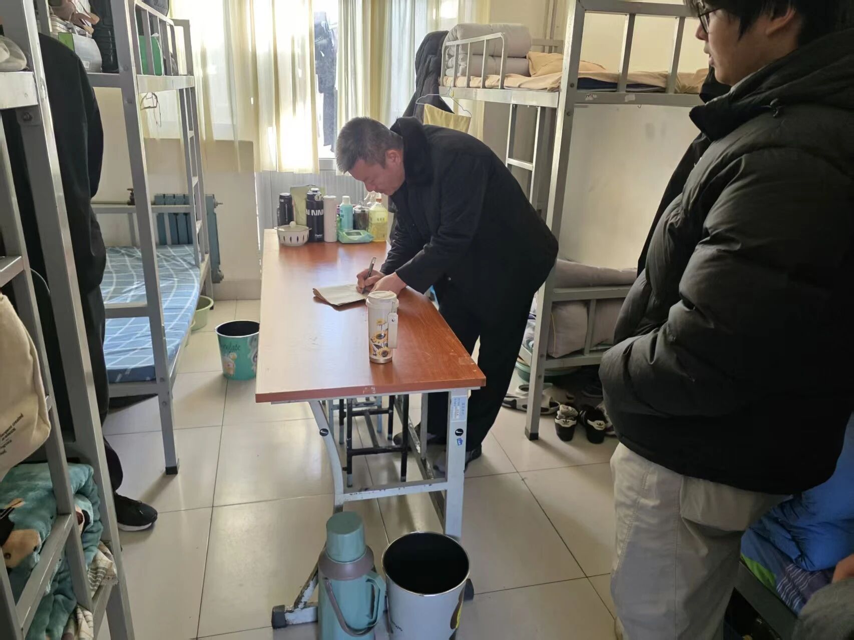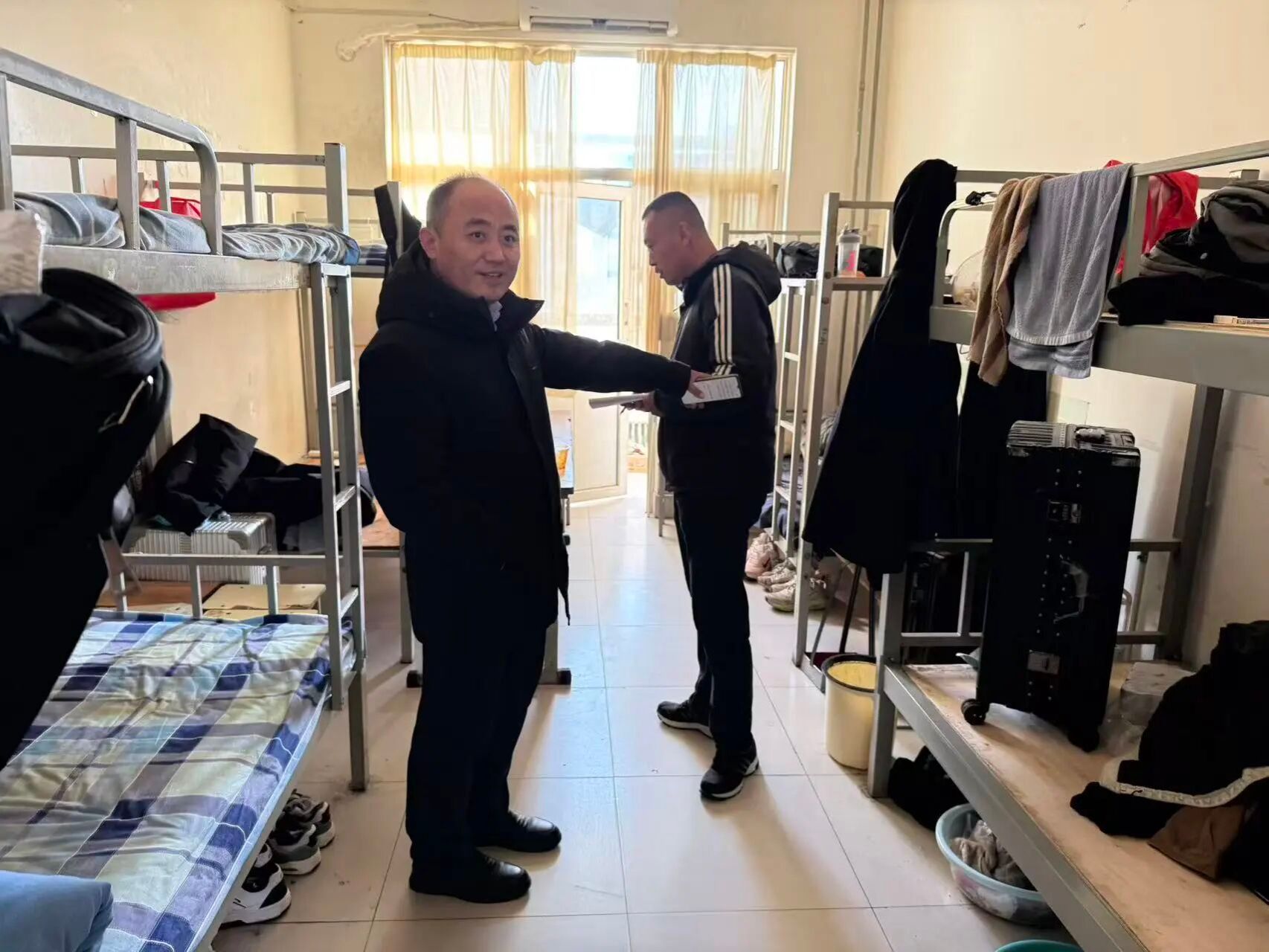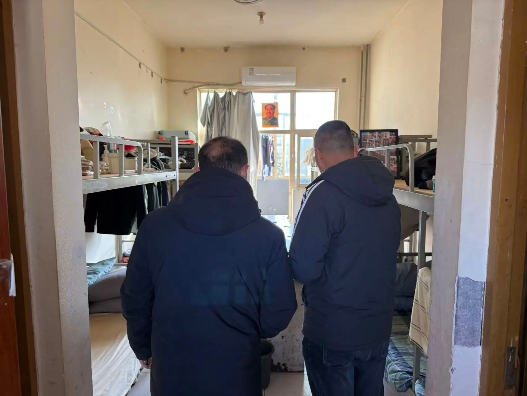 检查过程中也发现了一些问题,个人物品收纳分类不明确,卫生死角清理不彻底,生活用品摆放缺乏整齐度且有随意堆放的现象,整体视觉效果欠佳。