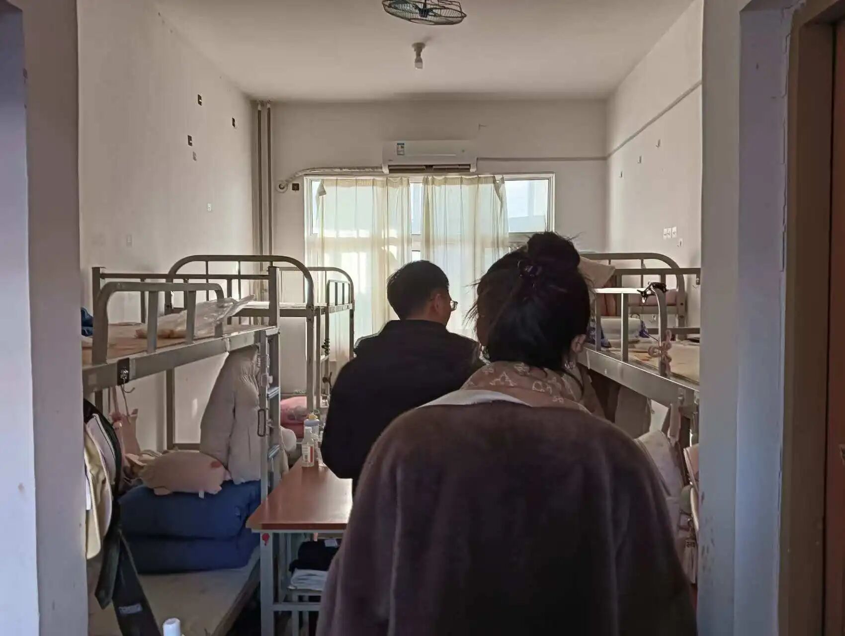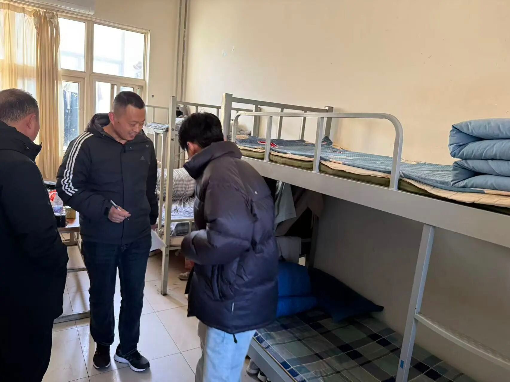 一番精心整理后,原本松散的被褥被叠成方方正正的“豆腐块”,宿舍里的每一处角落都被清理得干干净净,尽显同学们平日里练就的扎实内务本领。