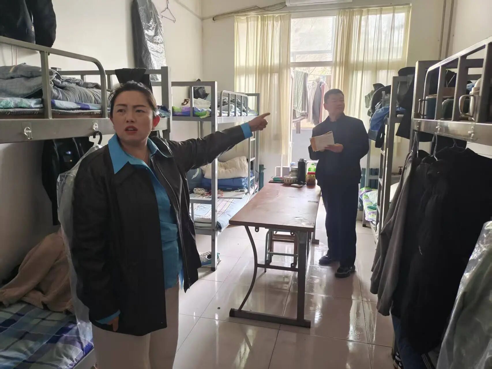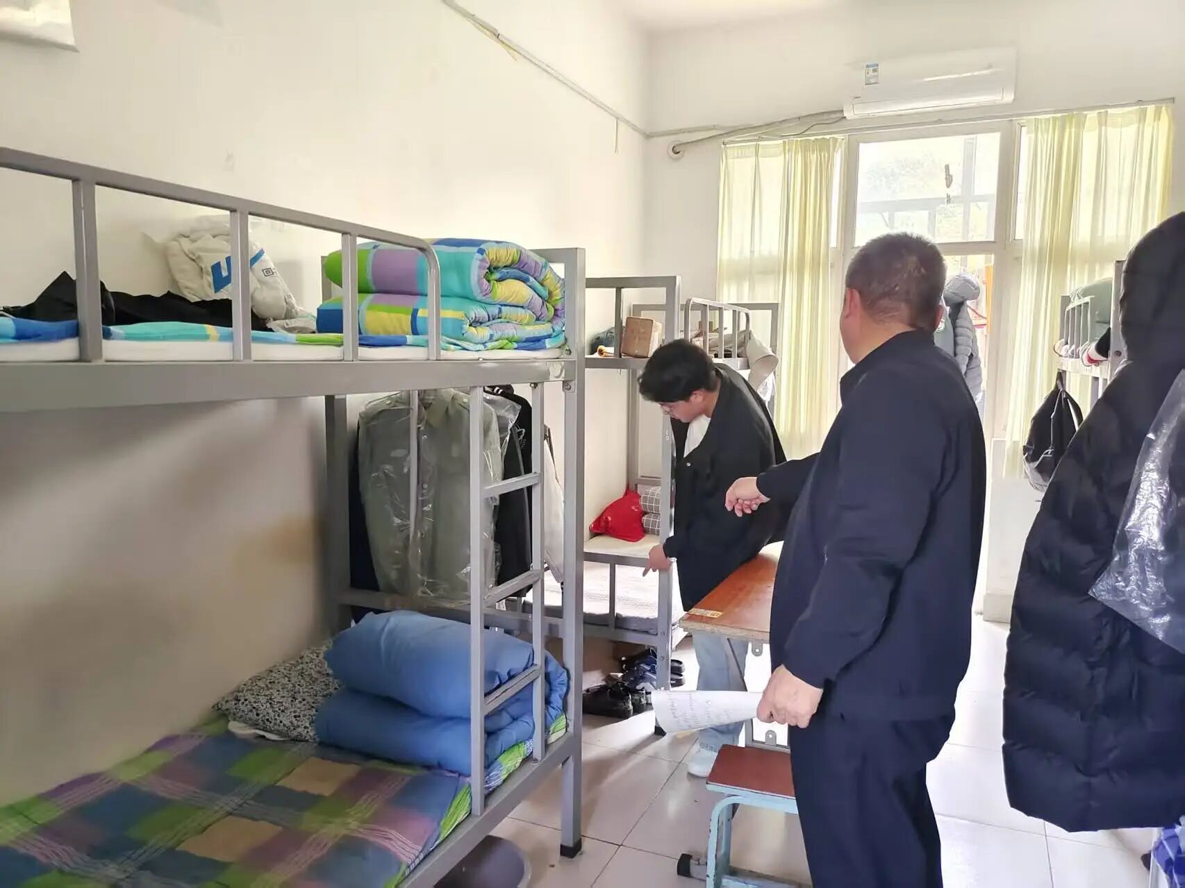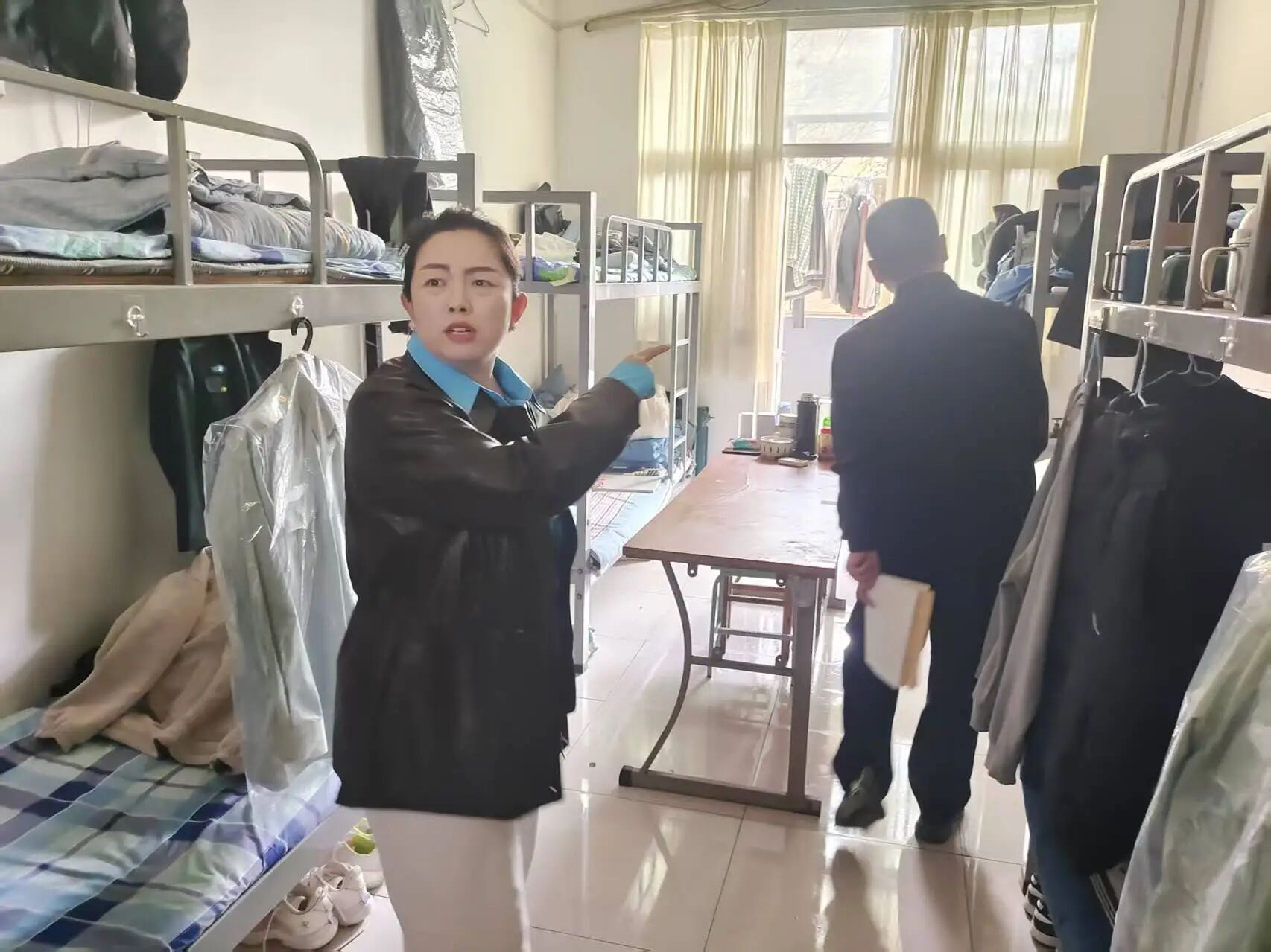 检查中多数寝室内务规范,被褥整齐、床铺整洁、物品有序;但部分寝室细节不到位,物品杂乱、存在卫生死角。
