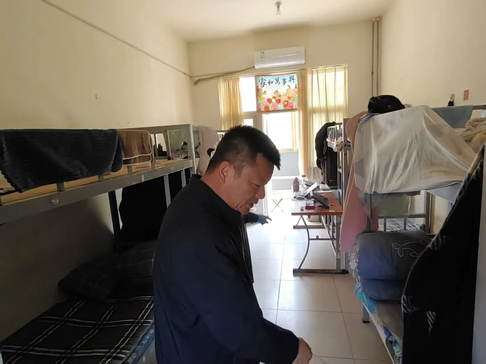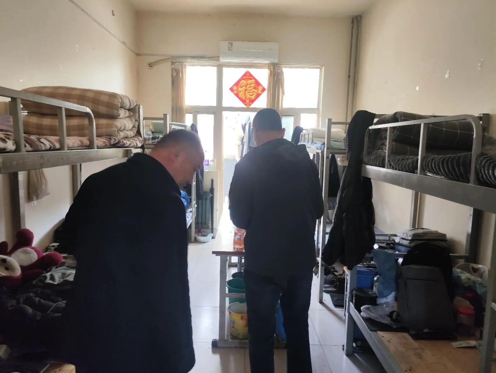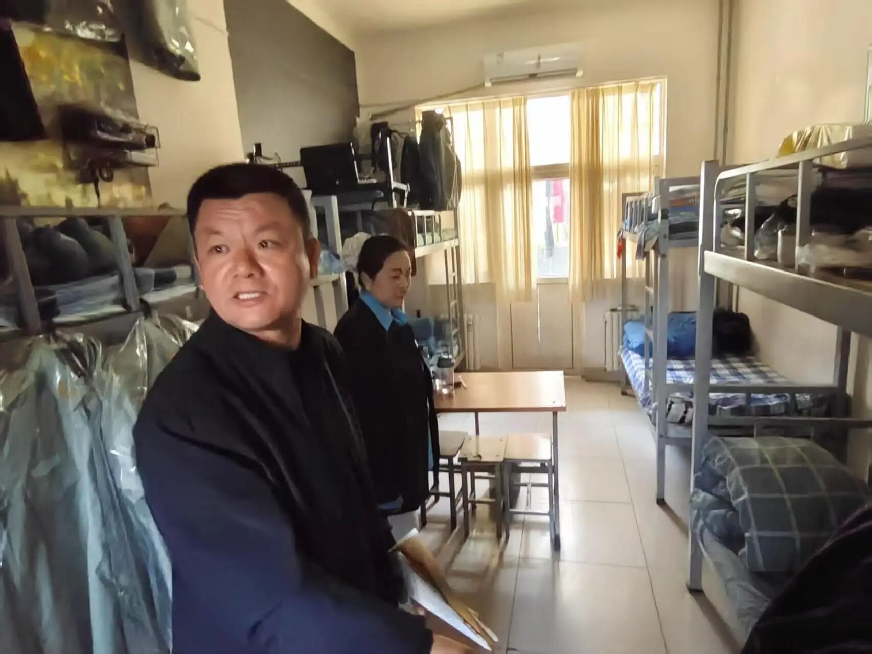检查中多数寝室内务规范,被褥整齐、床铺整洁、物品有序;但部分寝室细节不到位,物品杂乱、存在卫生死角。